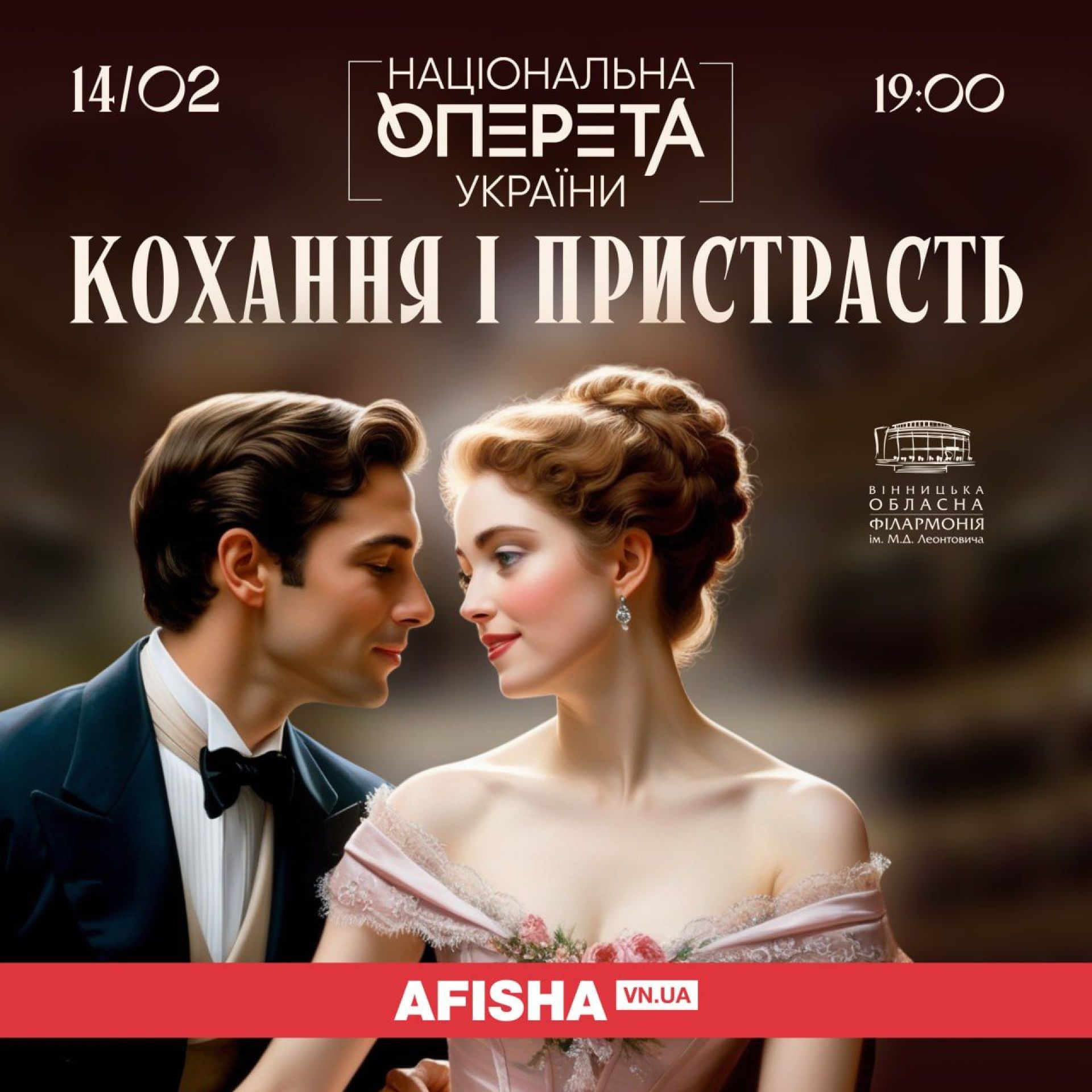 У День святого Валентина, 14 лютого, о 19.00 найсильніші, феєричні враження і безмежна музична насолода чекають вінничан і гостей міста на грандіозному концерті-прем’єрі «Кохання та пристрасть» славетної Національної оперети України і Симфонічного оркестру Вінницької філармонії.