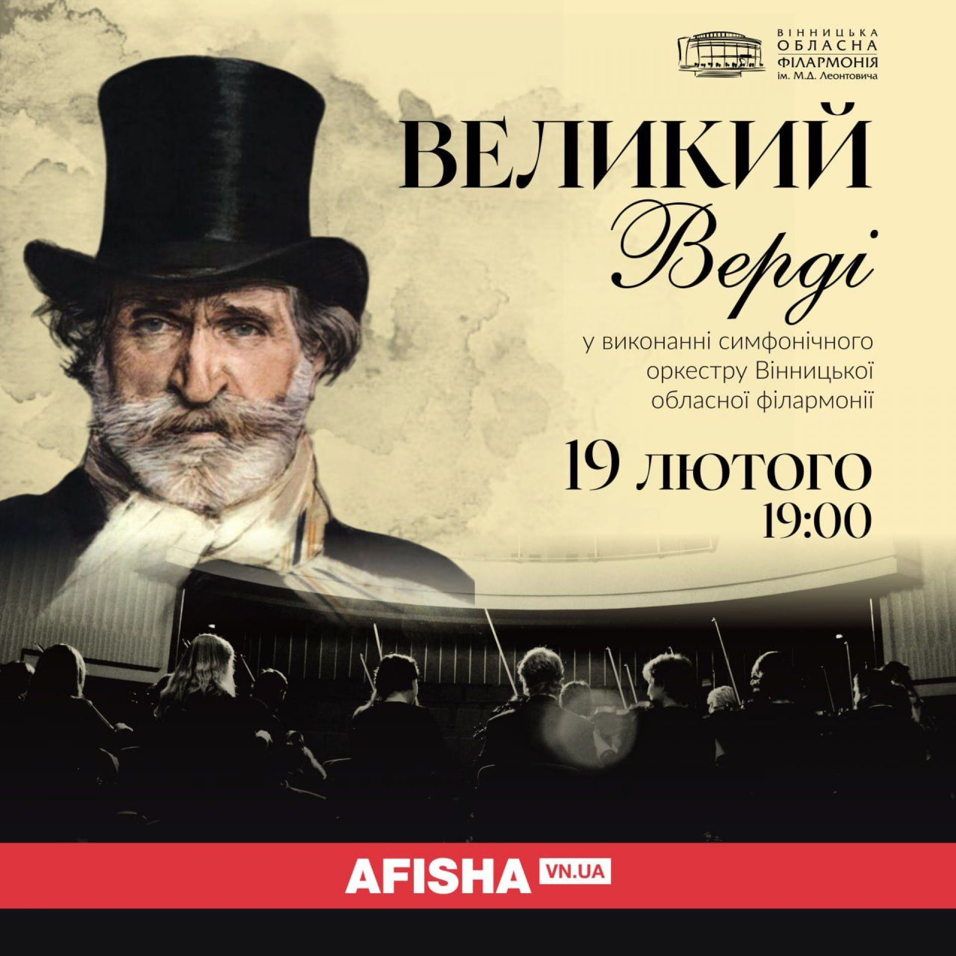 19 лютого о 19.00 Симфонічний оркестр Вінницької філармонії зачарує шедеврами Джузеппе Верді — італійського композитора, чий блискучий і неповторний геній подарував світові чудові твори, які й досі залишаються недосяжною вершиною оперного мистецтва.