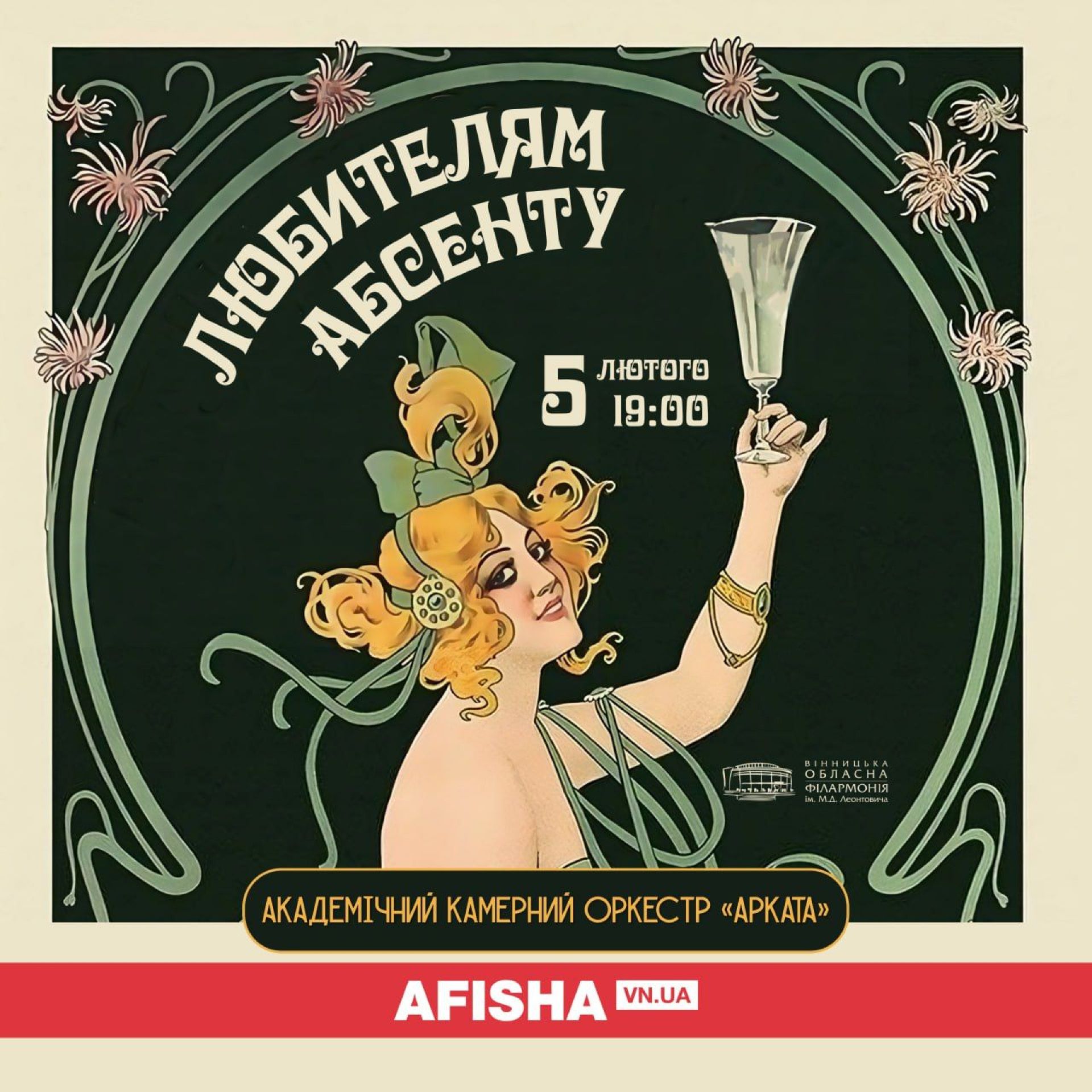 5 лютого о 19.00 у філармонії пройде незабутній концерт «Любителям абсенту».