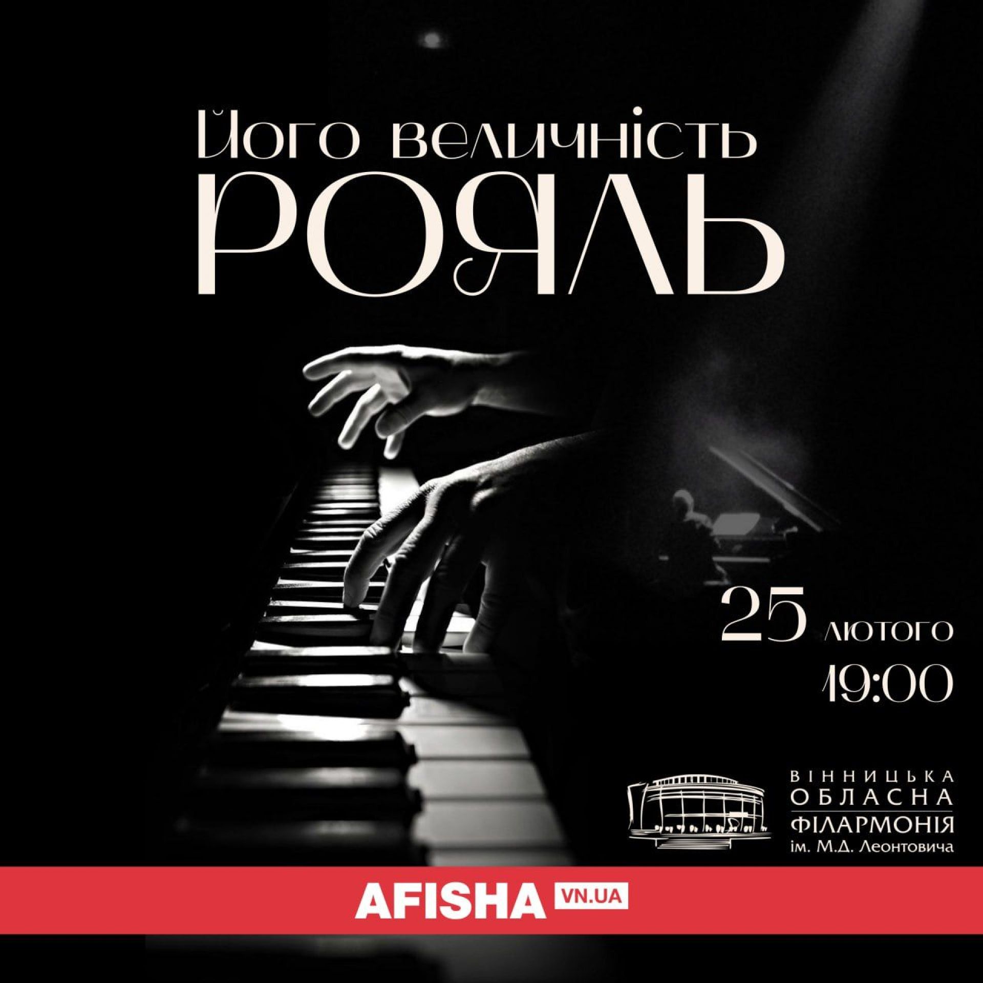 25 лютого о 19.00 артисти філармонії запрошують вінничан та гостей міста на вишуканий концерт «Його величність рояль».