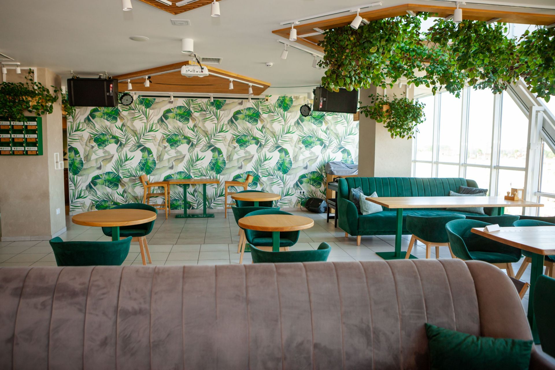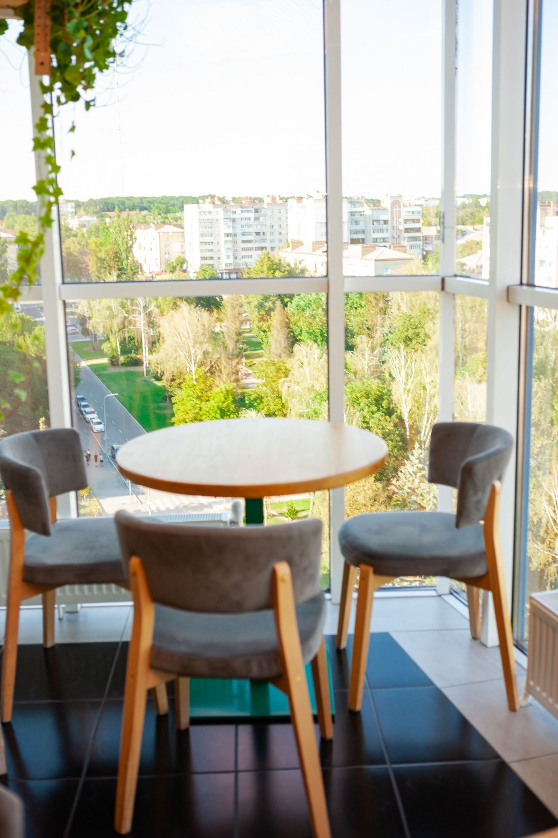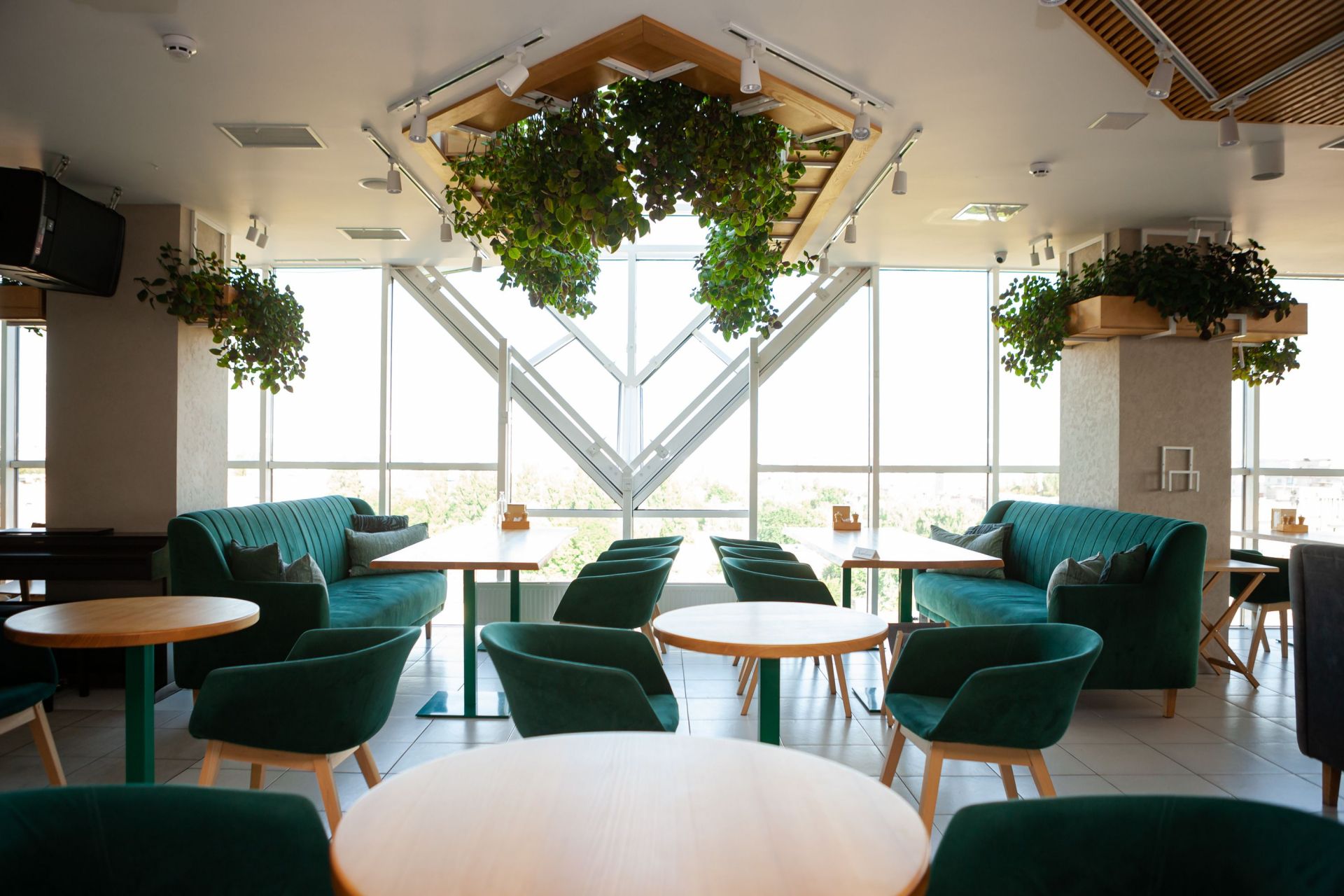 Затишні столики, зручні меблі, велика кількість живої зелені і можливість спостерігати за «космічним центром» Вінниці роблять ресторан ідеальним місцем для відпочинку і не тільки. Ресторація розташовується на 10-ому поверсі скляної офісної будівлі «Діамант». Основний зал може розмістити до 85-ти гостей. Комфортно влаштуватися за столиками ви зможете і вдвох, і у великій компанії.
