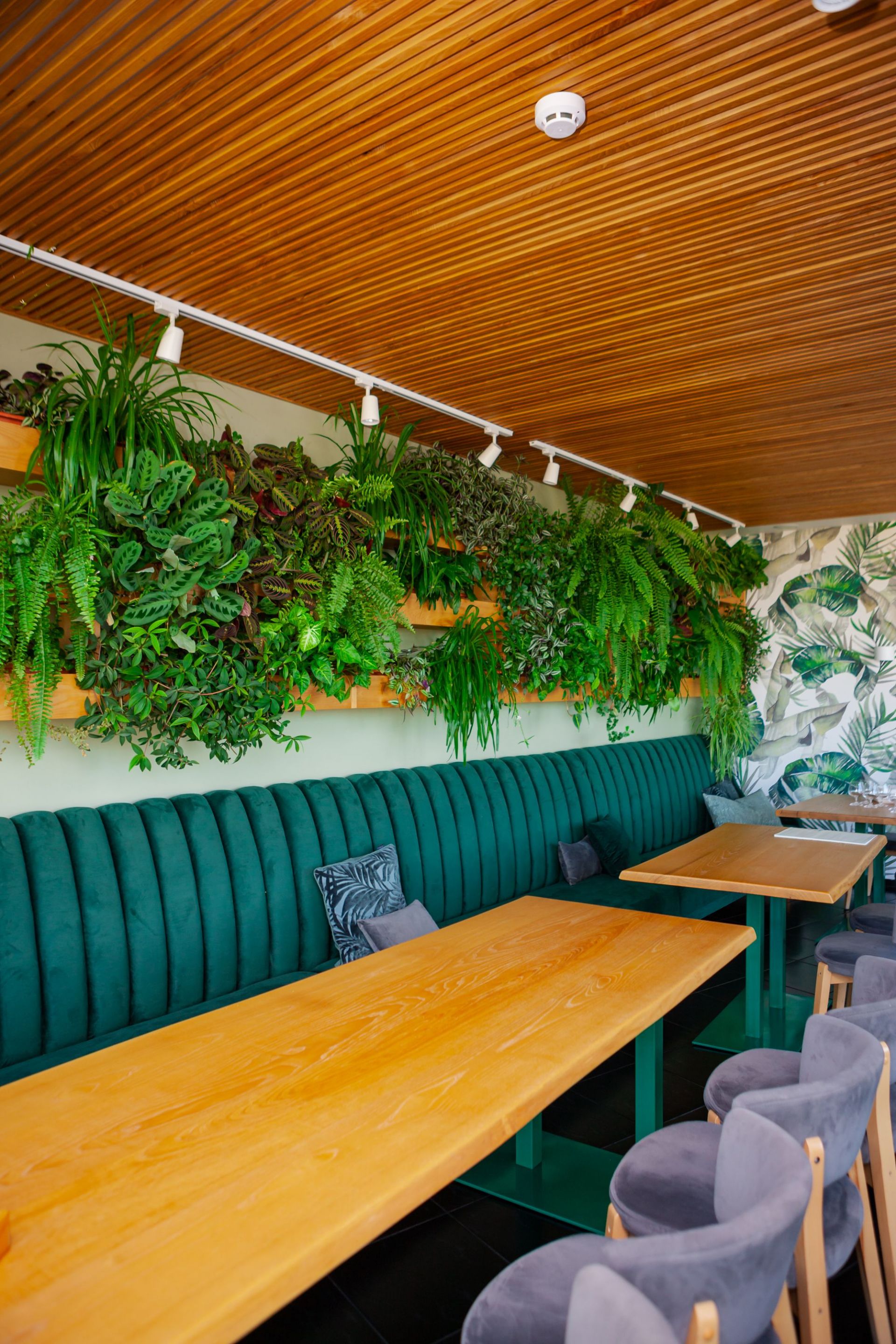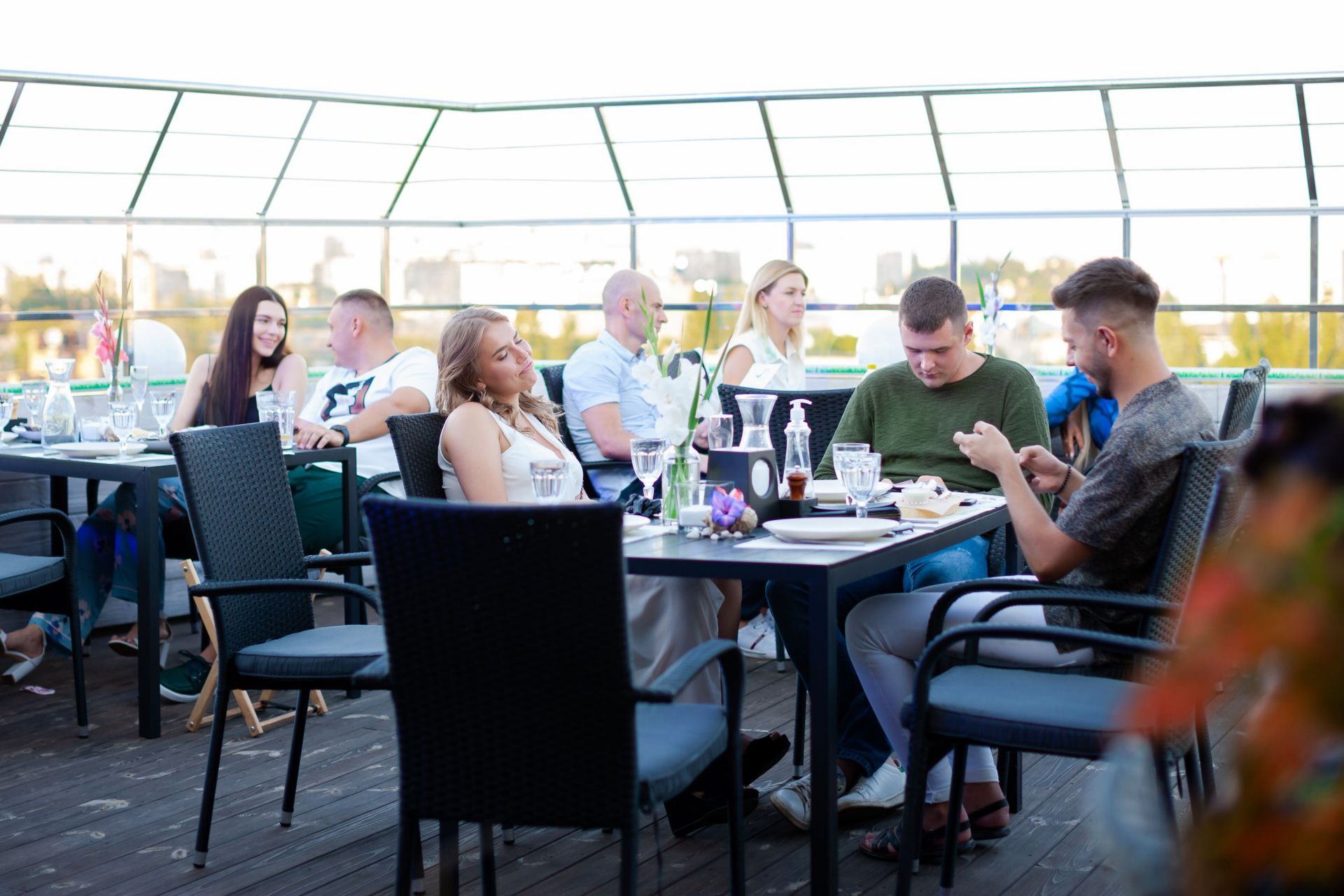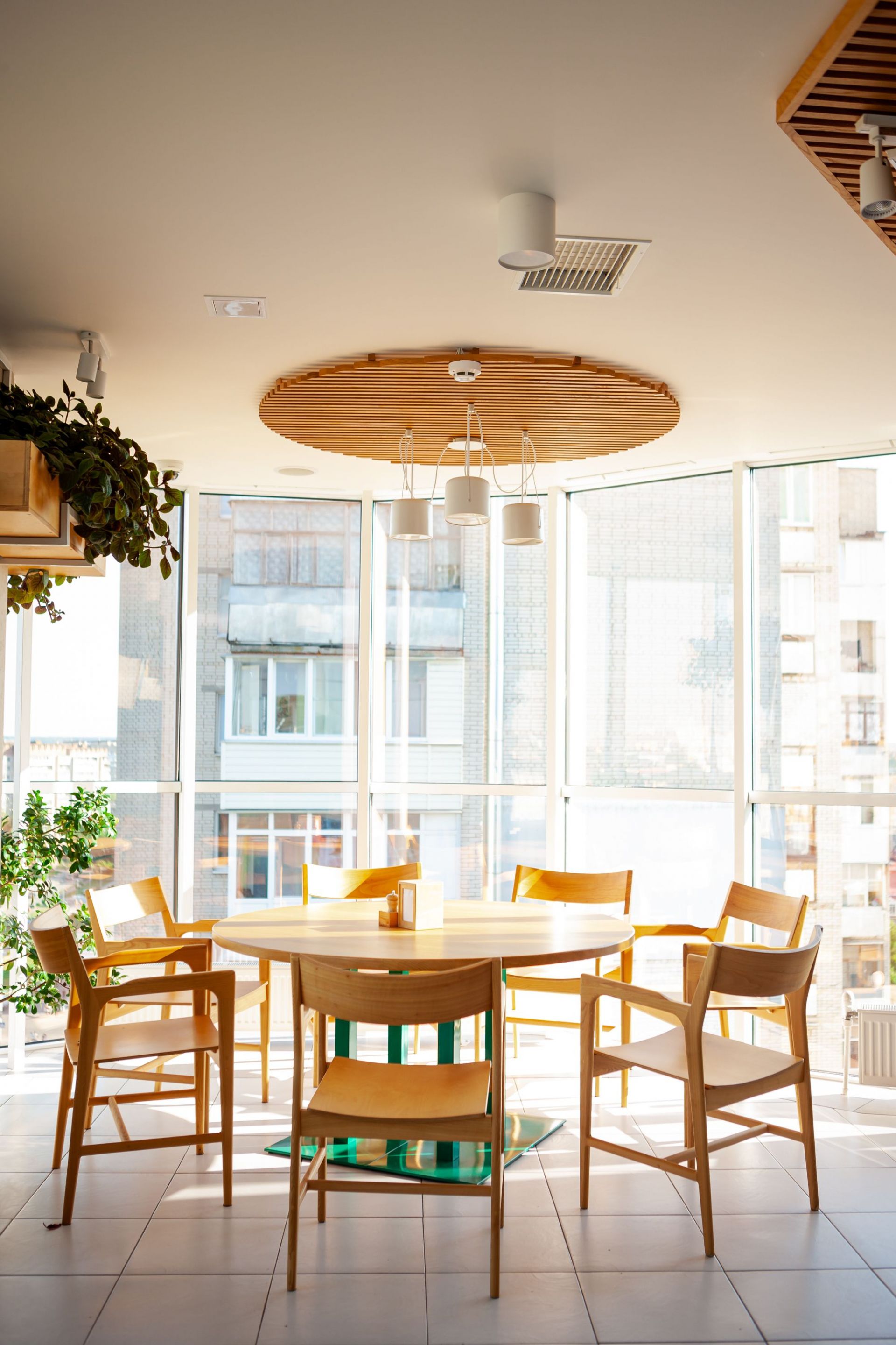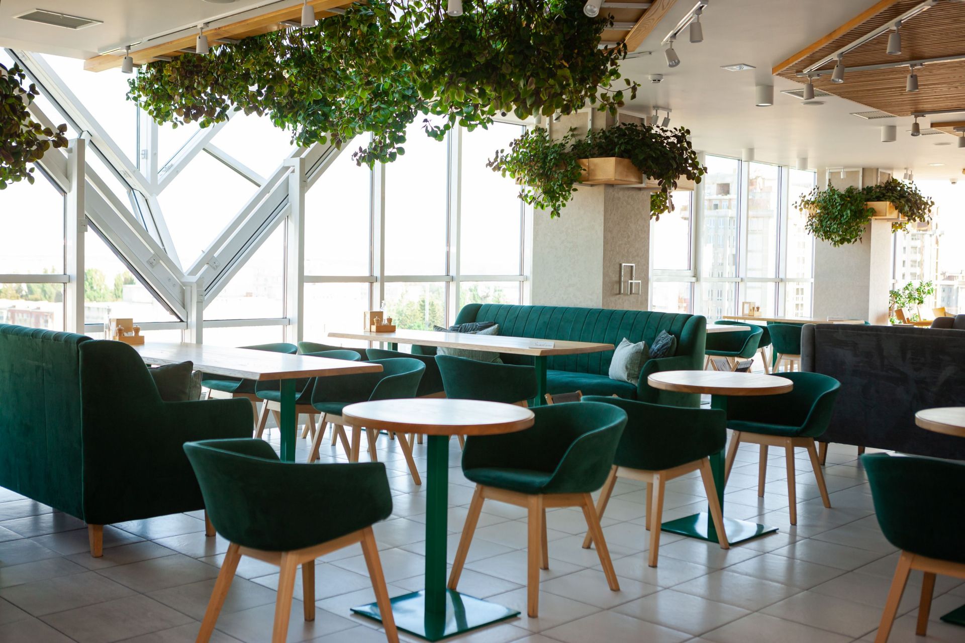Затишні столики, зручні меблі, велика кількість живої зелені і можливість спостерігати за «космічним центром» Вінниці роблять ресторан ідеальним місцем для відпочинку і не тільки. Ресторація розташовується на 10-ому поверсі скляної офісної будівлі «Діамант». Основний зал може розмістити до 85-ти гостей. Комфортно влаштуватися за столиками ви зможете і вдвох, і у великій компанії.
