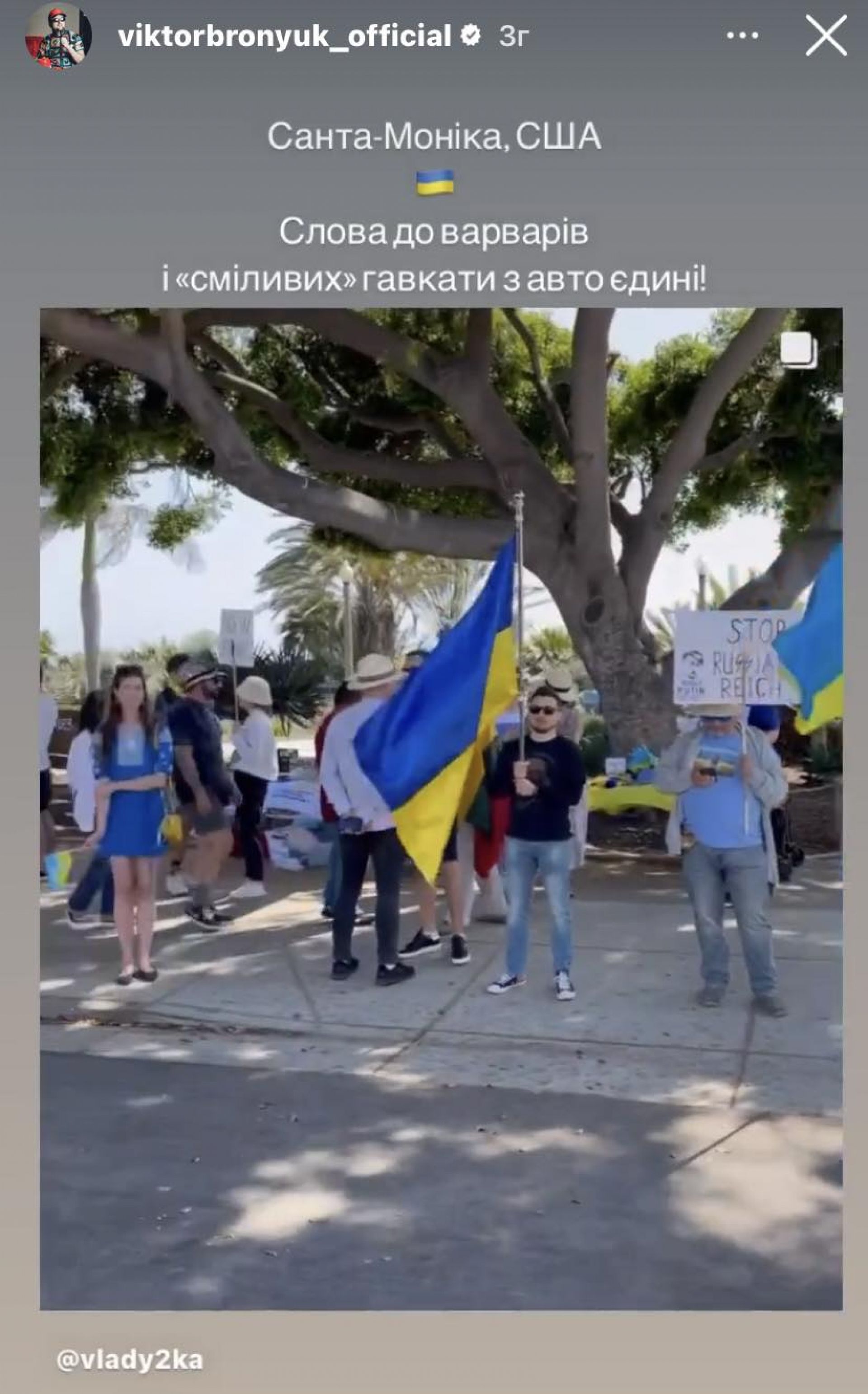 Сьогодні у сторіс у Instagram Віктор Бронюк і «ТІК» поділились відео, який на мітингу на підтримку України у США у Санта-Моніці зняли наші співвітчизники.