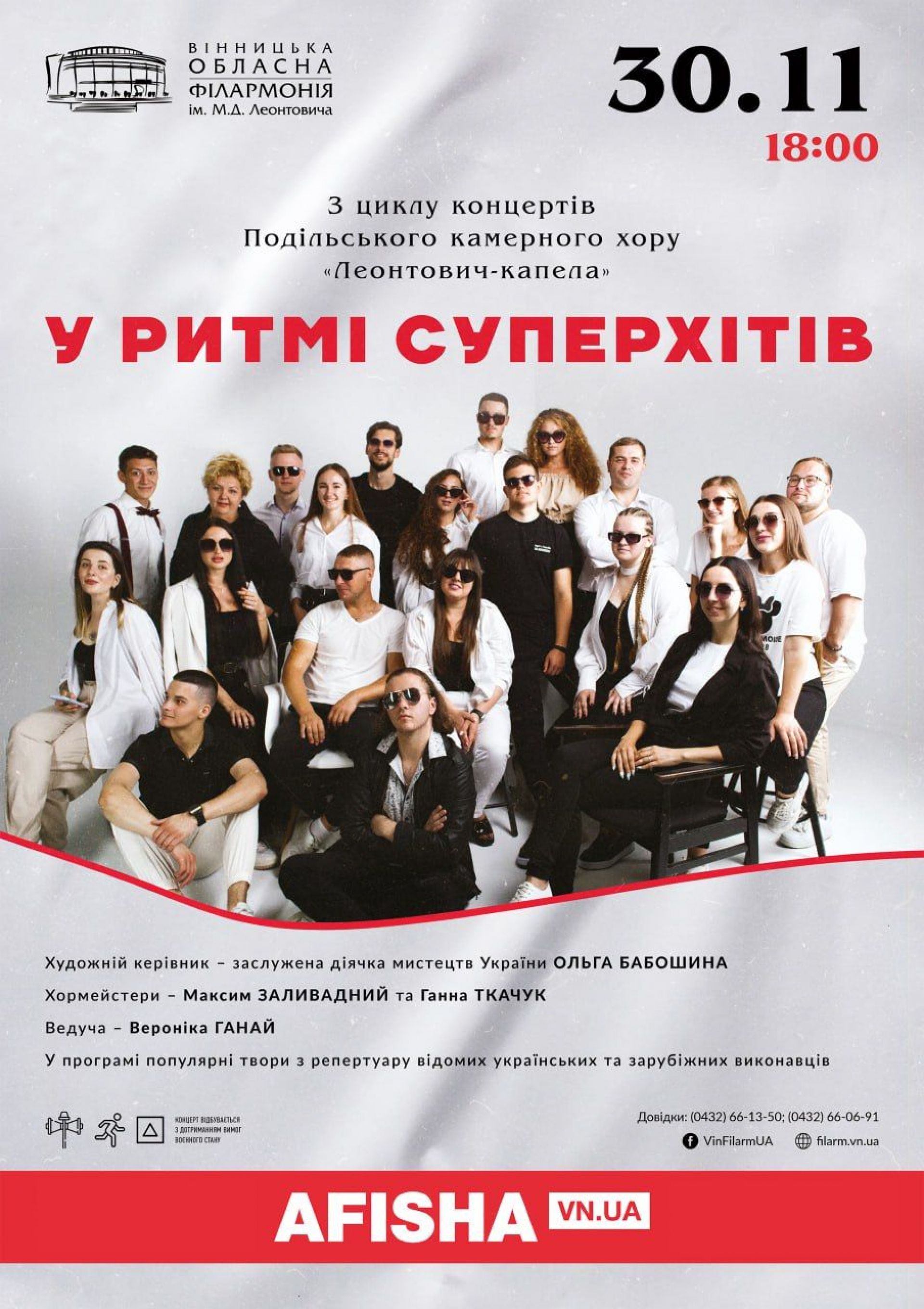 На вечорі суперхітів 30 листопада о 18.00 у філармонії всіх чекає Подільський камерний хор «Леонтович-капела», що нещодавно відсвяткував свій перший ювілей — п’ятиріччя.