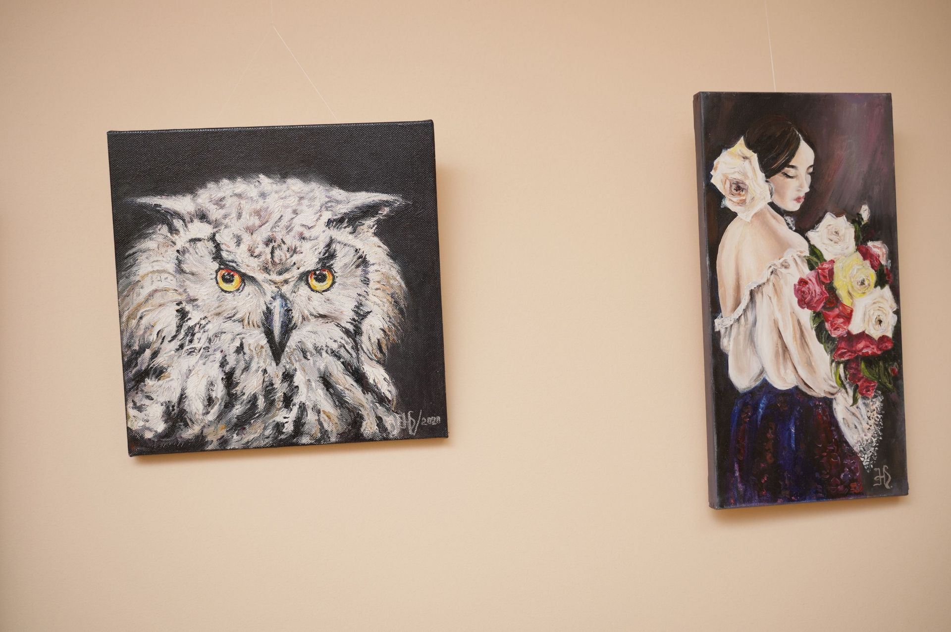 Виставка у Ветеранському просторі (вулиця Єрусалимка, 8) виявилась досить спонтанною. За словами майстрині, їй запропонували представити тут свої картини вранці 12 квітня, а вже наступного дня було відкриття.