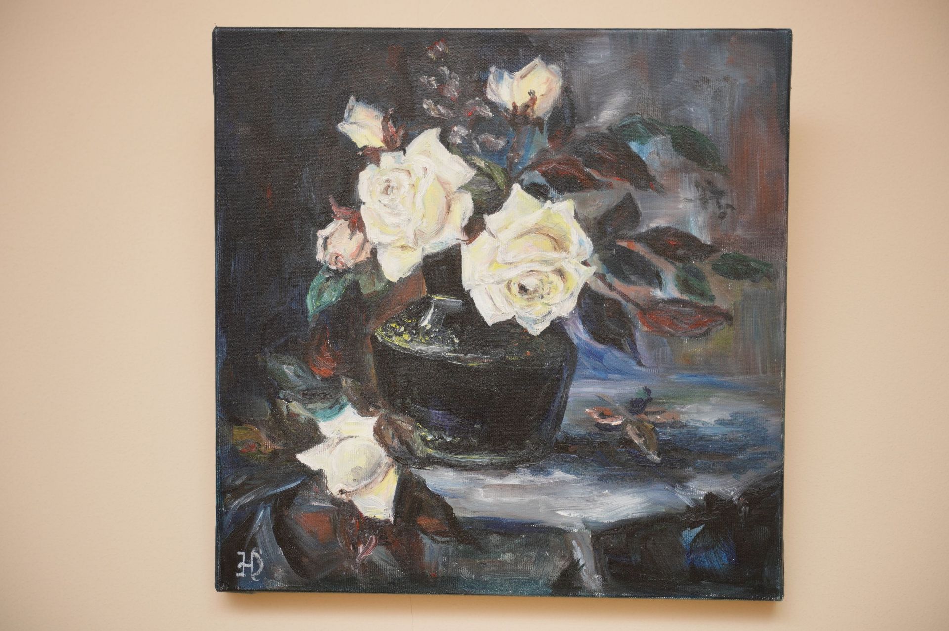 — До цього я писала квіти лише маслом, та мені захотілось зобразити їх по-новому. Останнім часом я взагалі захоплююсь акварельними квітами й мені дуже цікаво їх писати, — розповідає вона. — Раніше, коли тільки починалась моя творчість, я малювала пейзажі, натюрморти й іноді людей. Та тепер я створюю більш продумані роботи, вони мають певну історію і сенс.