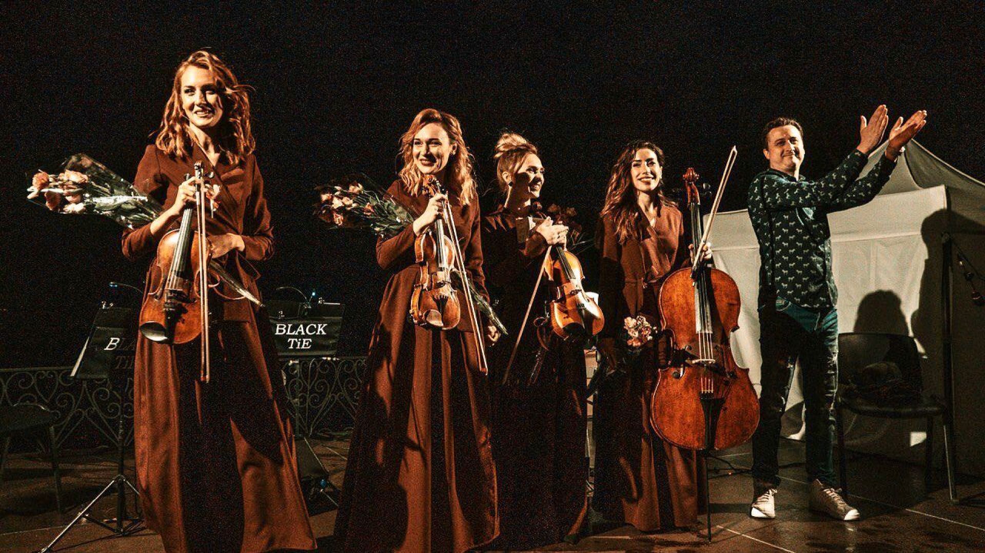 Головними героїнями концерту стануть артистки відомого в Україні і за кордоном колективу String Quartet Black Tie, що був створений у 2009 році. Яскраві і талановиті учасниці квартету є лауреатками престижних міжнародних конкурсів, гастролювали у складах кращих оркестрів світу практично у всіх країнах і на всіх континентах та брали участь у записі саундтреків до українських та голлівудських фільмів.