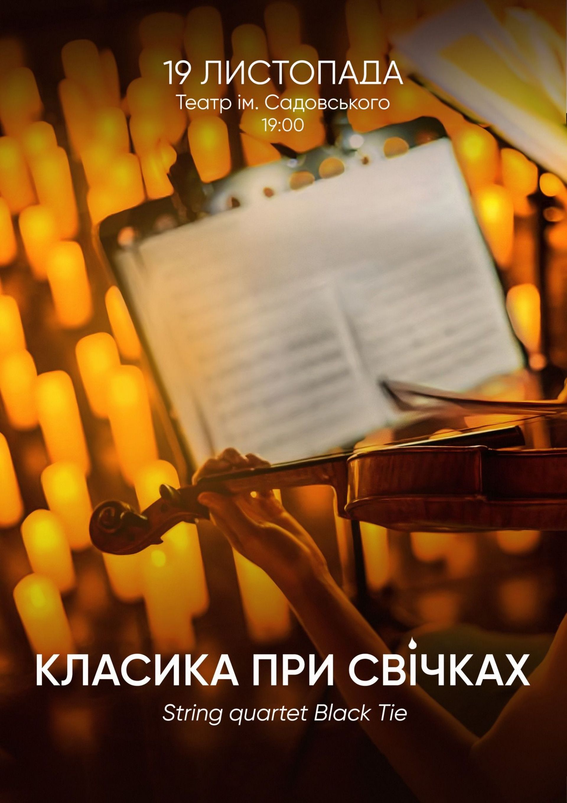 Приходьте насолоджуватися віртуозною грою String Quartet Black Tie на яскравому концерті «Класика при свічках» у неділю, 19 листопада, о 19.00 у театрі ім. Садовського.