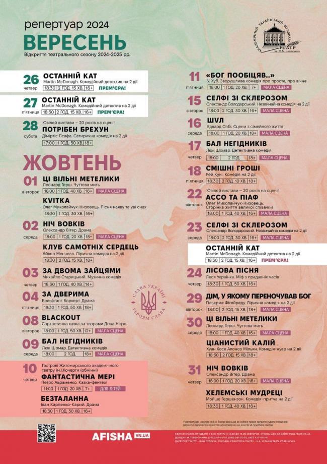 Гастролі, фестивалі і детектив «Останній кат»: Вінницький театр відкриває новий театральний сезон