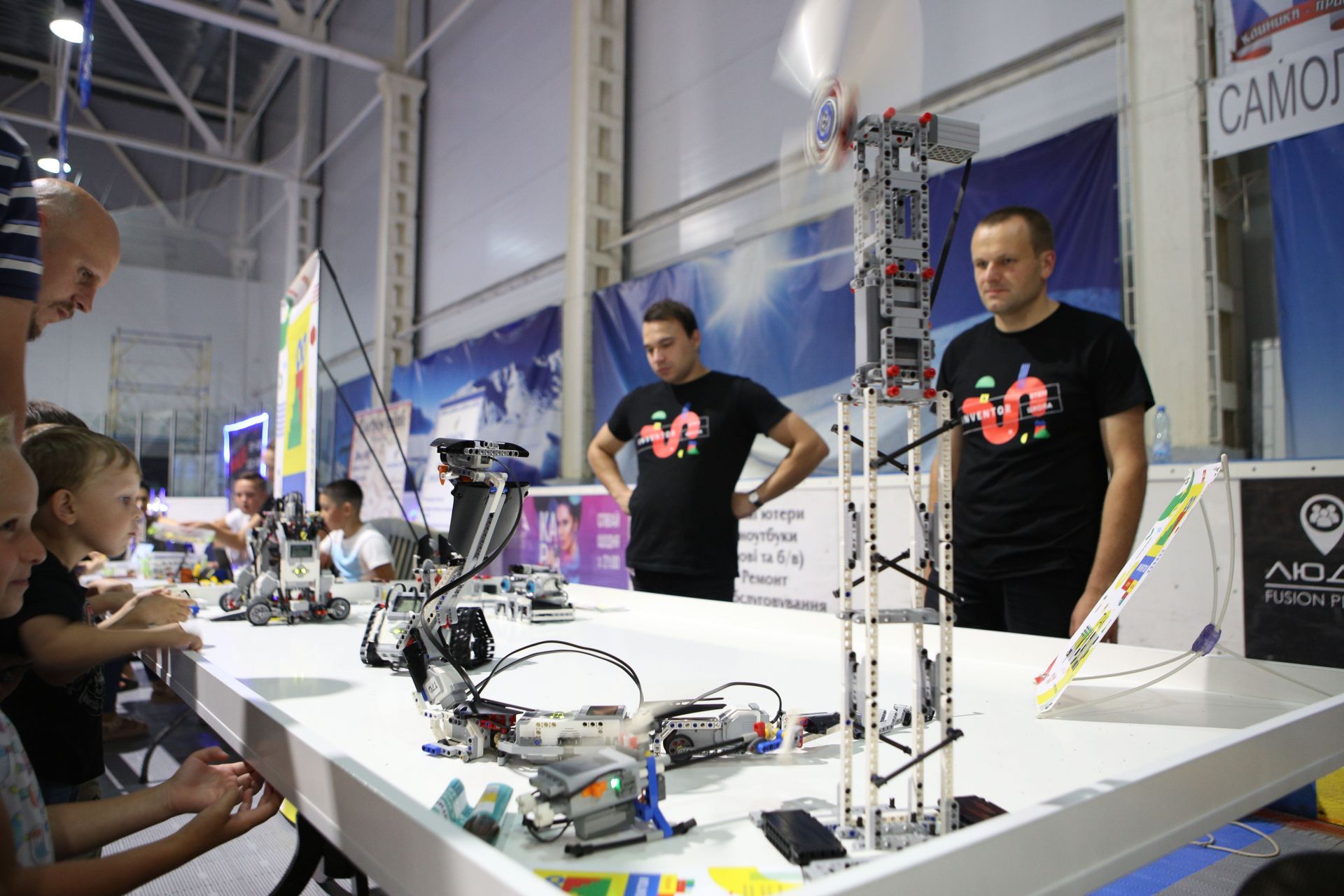 Чимала черга вишикувалася перед стендом, де можна було подивитися на те, як рухаються роботи. Ними можна було і керувати, безкоштовно.