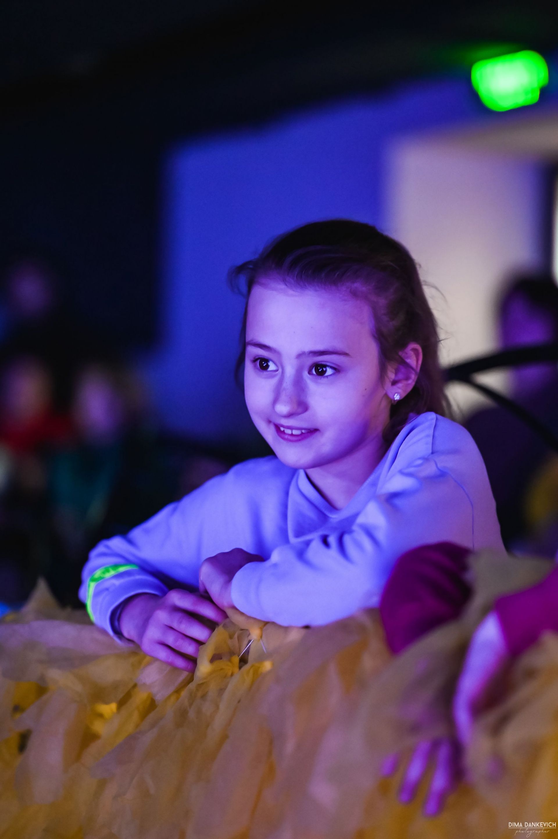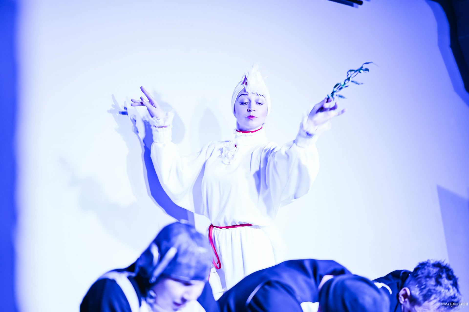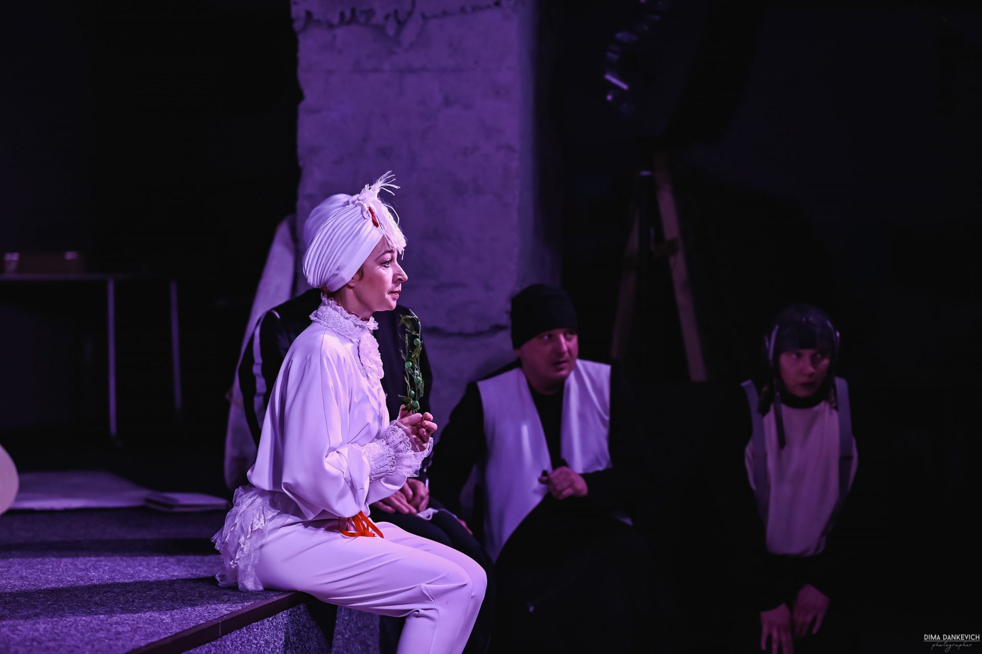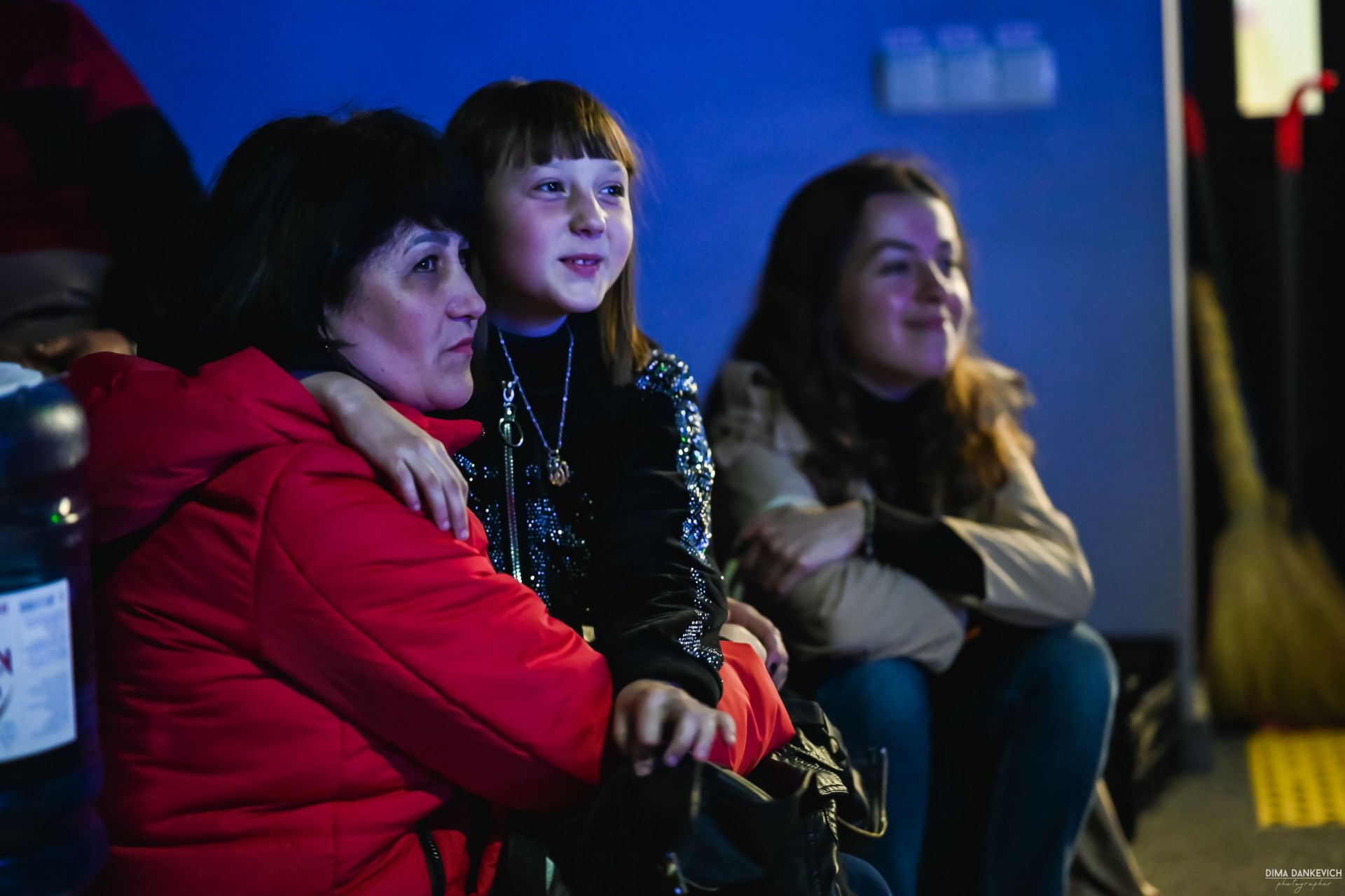 Без звичних трьох театральних дзвінків, у стінах, де невтомні волонтери щодня плетуть маскувальні сітки і збирають допомогу для захисників і переселенців, за невеличкою імпровізованою кулісою актори завершують останні приготування перед виходом на сцену, а глядачі займають місця у залі, аби у час війни доторкнутися до театрального мистецтва.