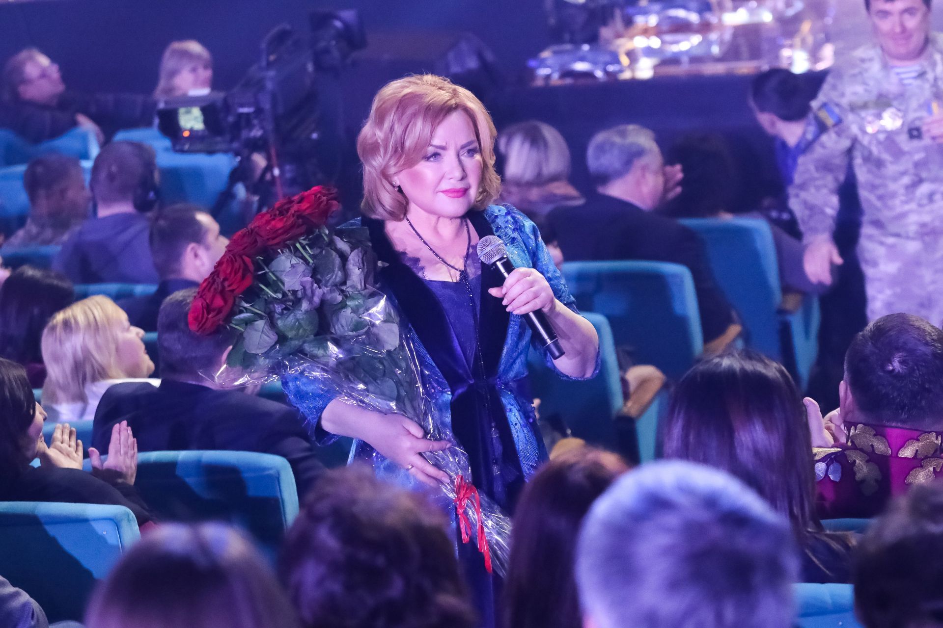 Як тільки розпочалась перерва, я побігла за куліси, одягла національний одяг, який тоді було важко дістати і ми все вишивали самі, й виходжу на сцену. Люди ходять туди-сюди, а я починаю колядувати багато колядок одну за одною. Ніхто не розуміє, що робиться, світло на сцені гасне під час антракту, але на мене спрямували два прожектори, щоб було видно, що там хтось стоїть. Усі режисери і «світлячки», які працювали в Палаці «Україна», хотіли це підтримати, бо поважали мене і хотіли коляди. Це був шалений виклик для тогочасного Києва.