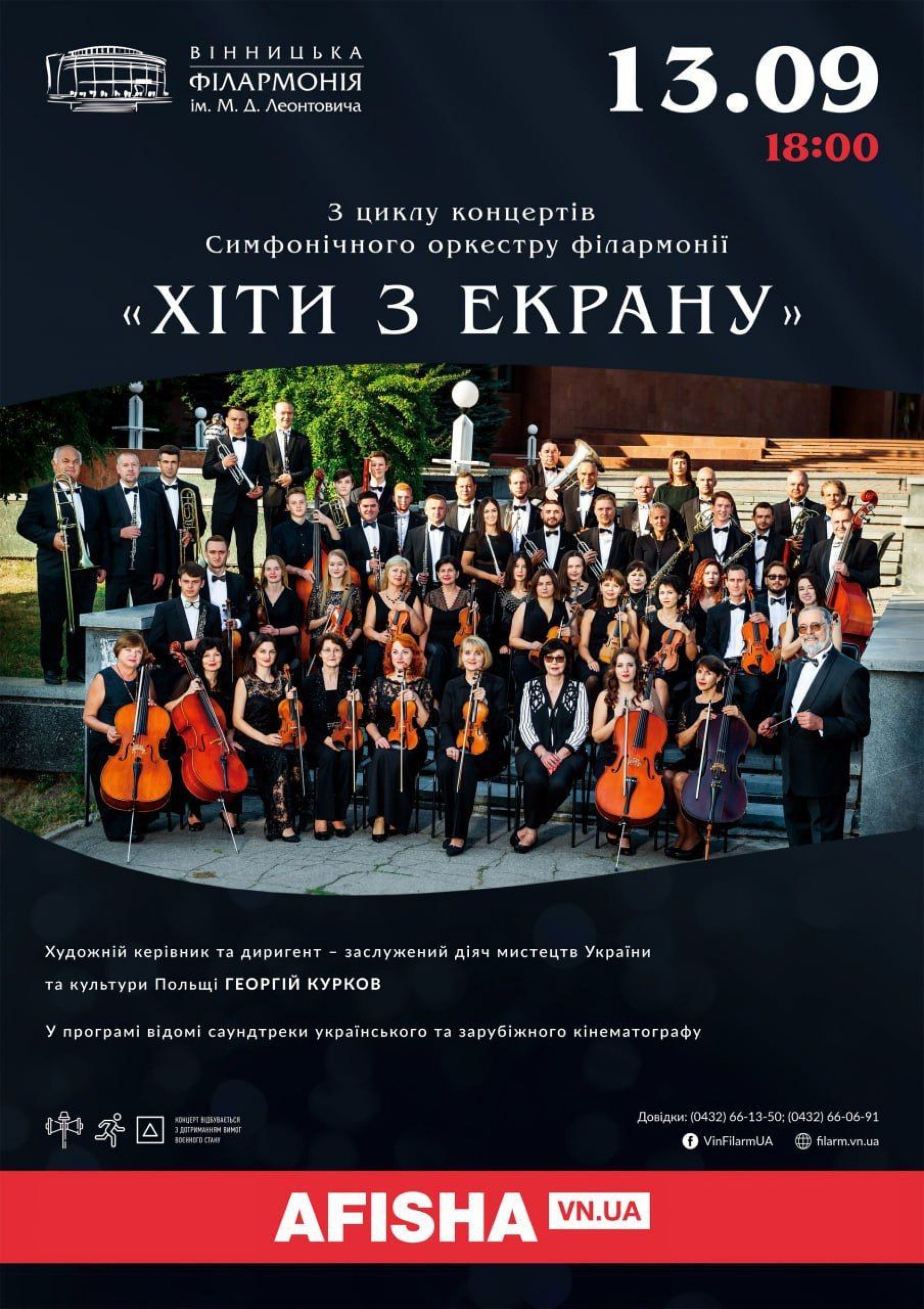 13 вересня о 18.00 вінничан і гостей міста чекає неймовірне симфонічне шоу «Хіти з екрану» у межах циклу концертів Симфонічного оркестру філармонії.