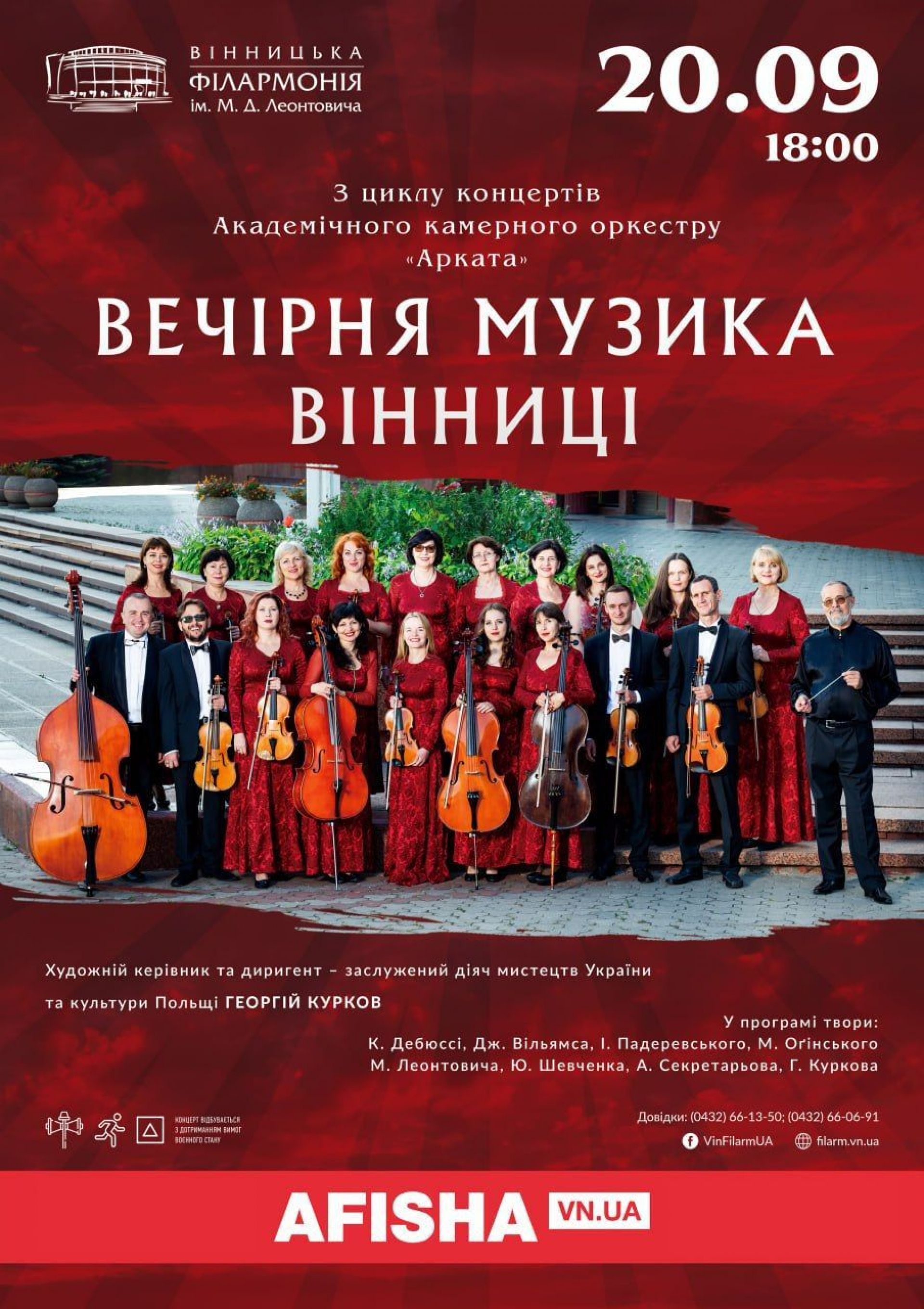 20 вересня о 18.00 не пропустіть особливий концерт Академічного камерного оркестру «Арката» «Вечірня музика Вінниці».