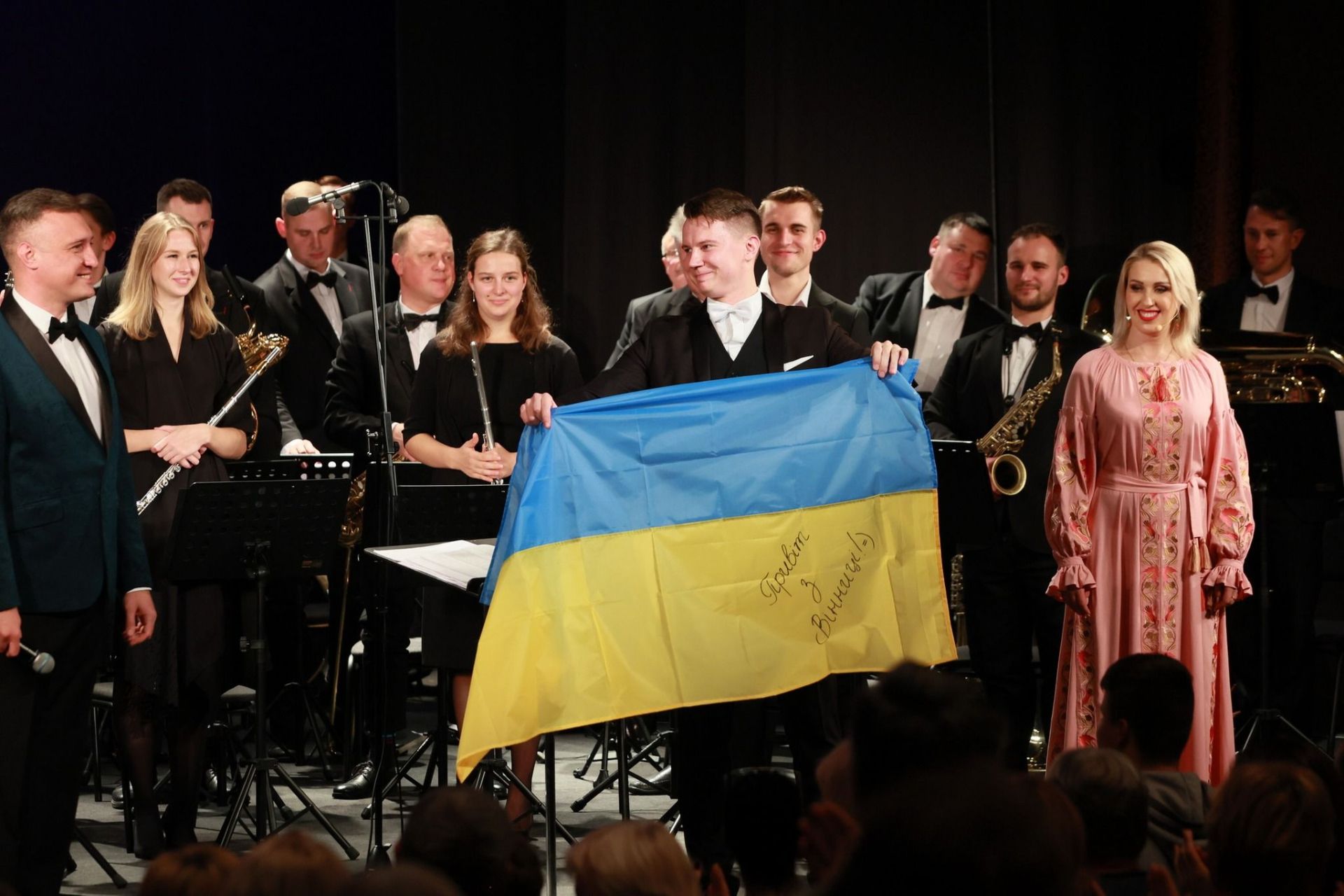 - Їм аплодували, стоячи! А литовський диригент не хотів і на мить випускати із рук особливий подарунок — прапор України із надписом від волонтерів «Привіт із Вінниці!»