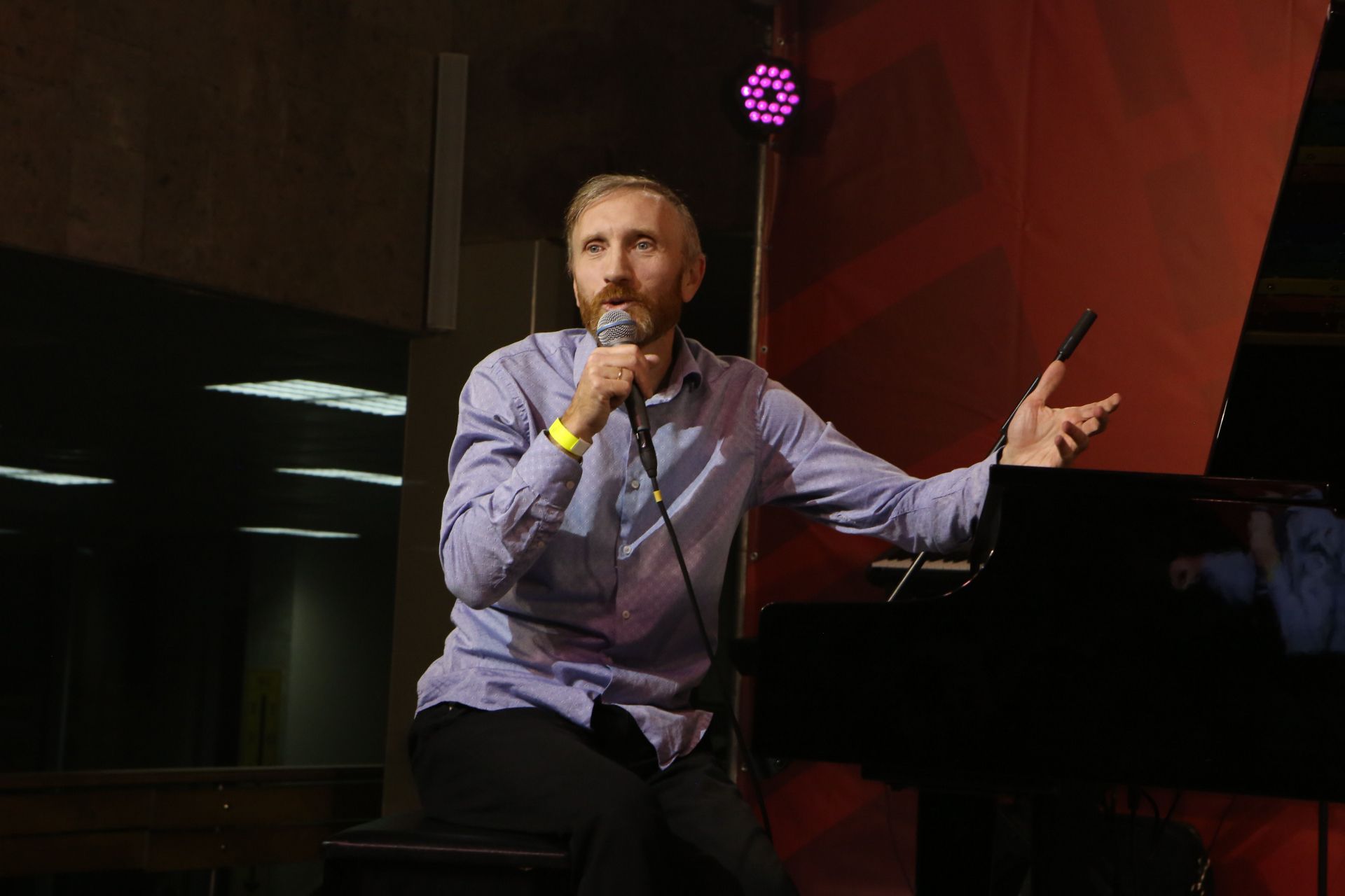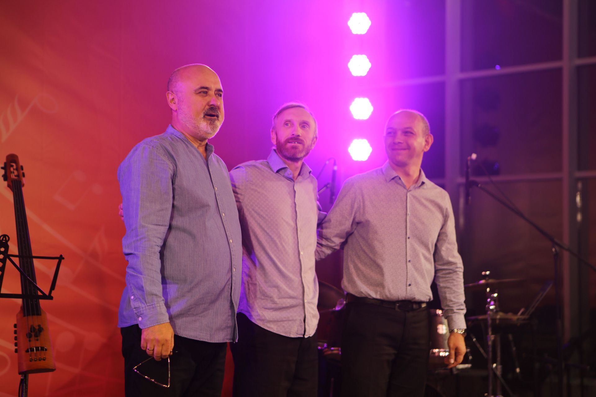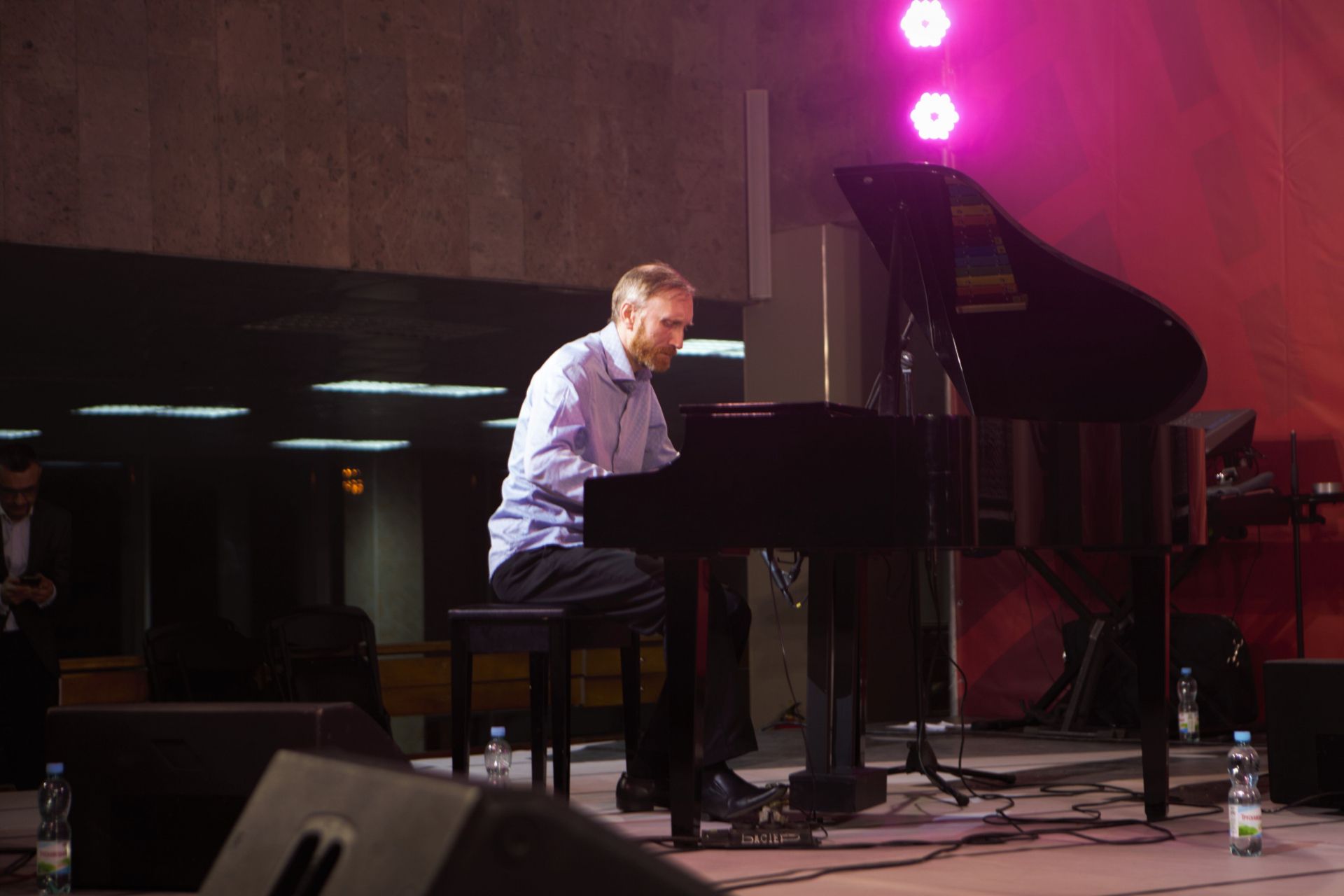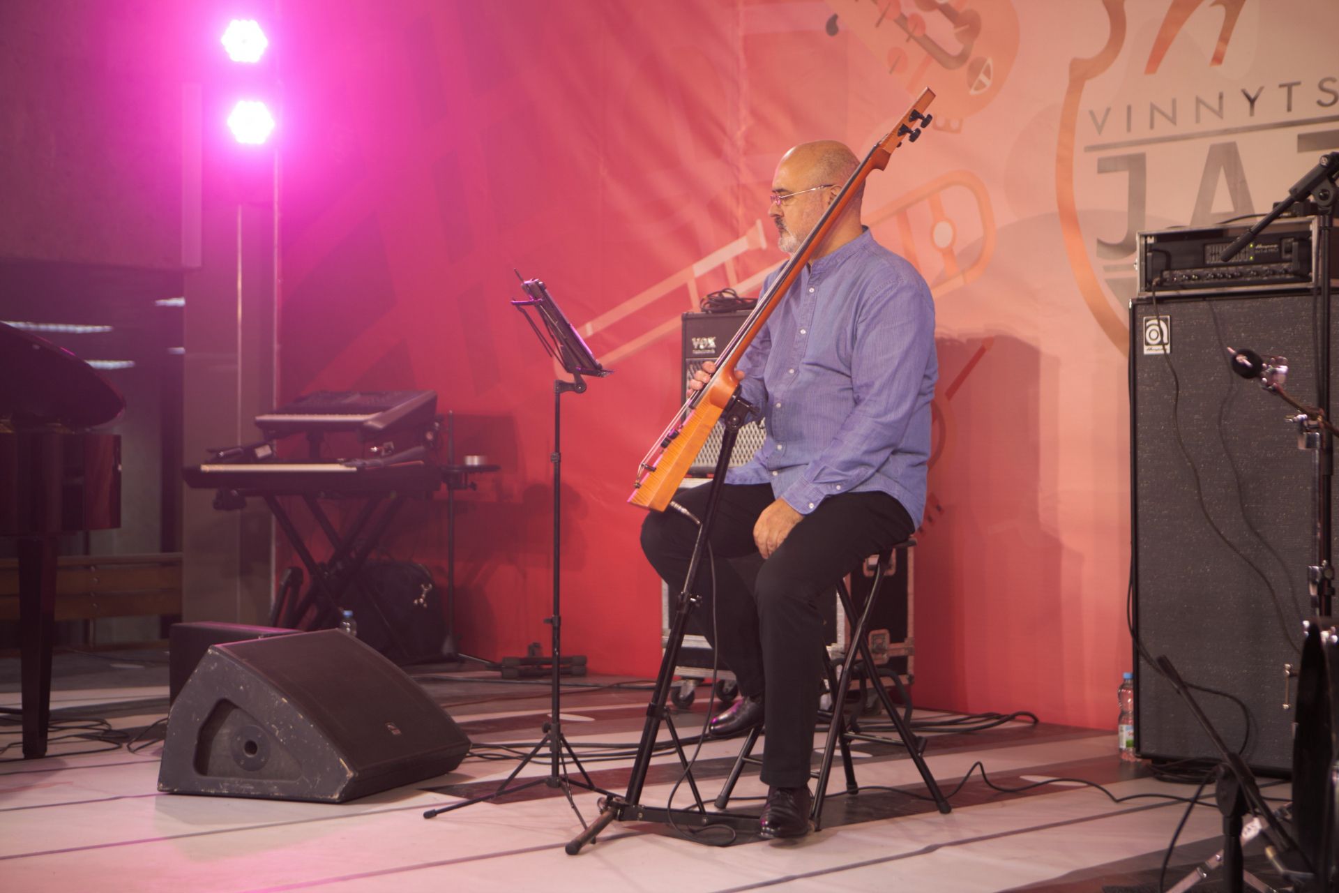 — Я був на багатьох фестивалях, але з інструментом вперше. Хвилююсь, — наражається на оплески присутніх Олексій Коган. — Вінниця для мене це не фонтани, і не зала «Плеяди». Це насамперед люди: Ірина Френкель (продюсерка фестивалю, — авт.), Павло Третьяков (директор фестивалю, — авт.), — без цих людей не можна уявити Vinnytsia JazzFest, — знову оплески.