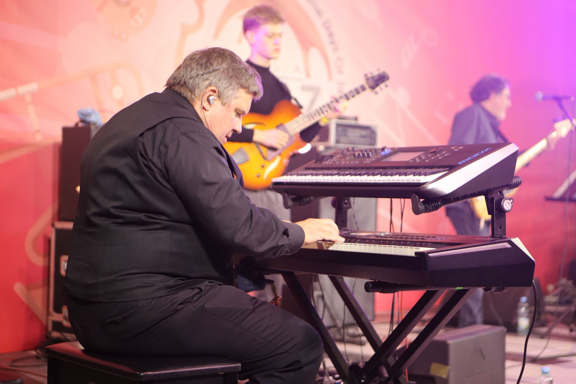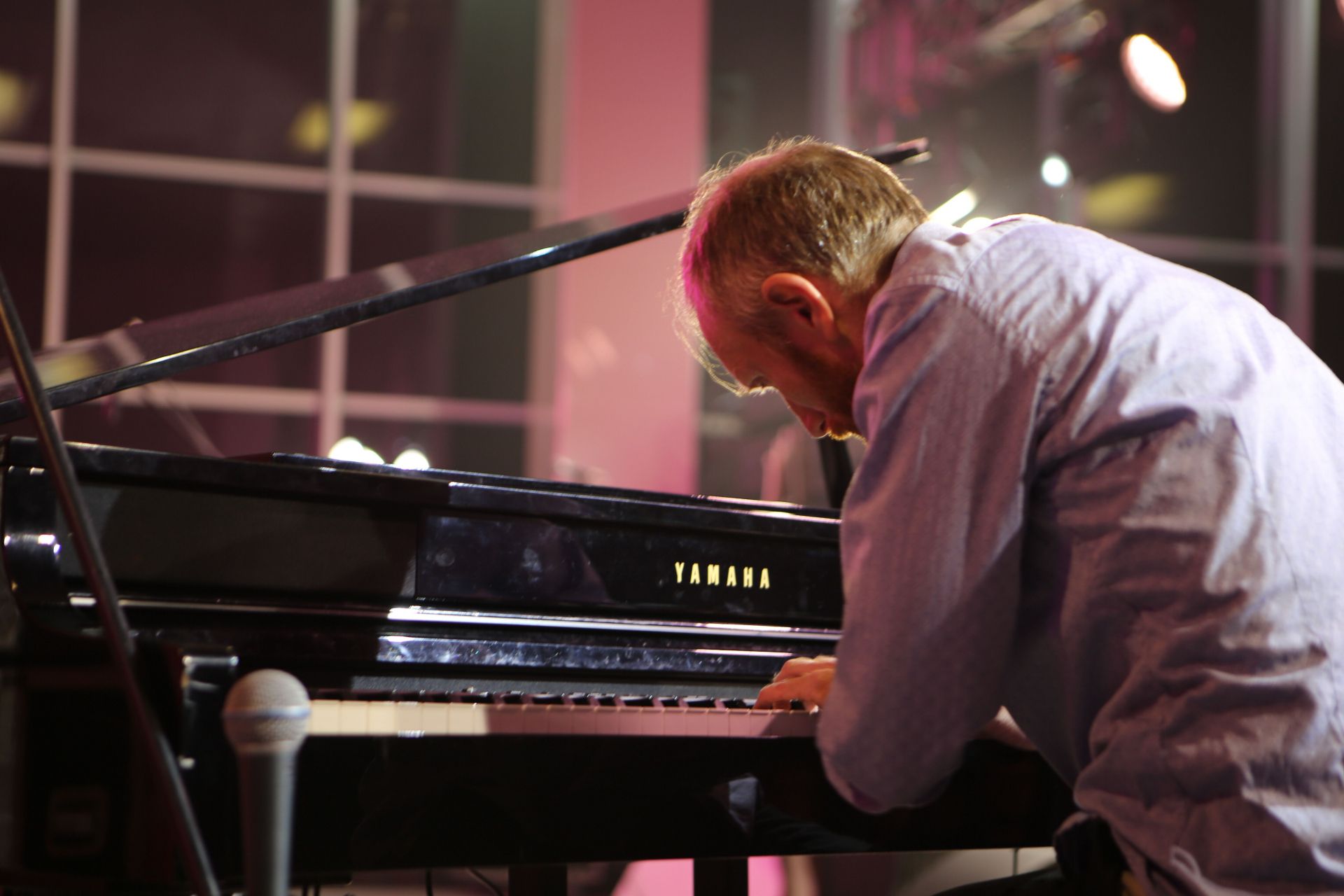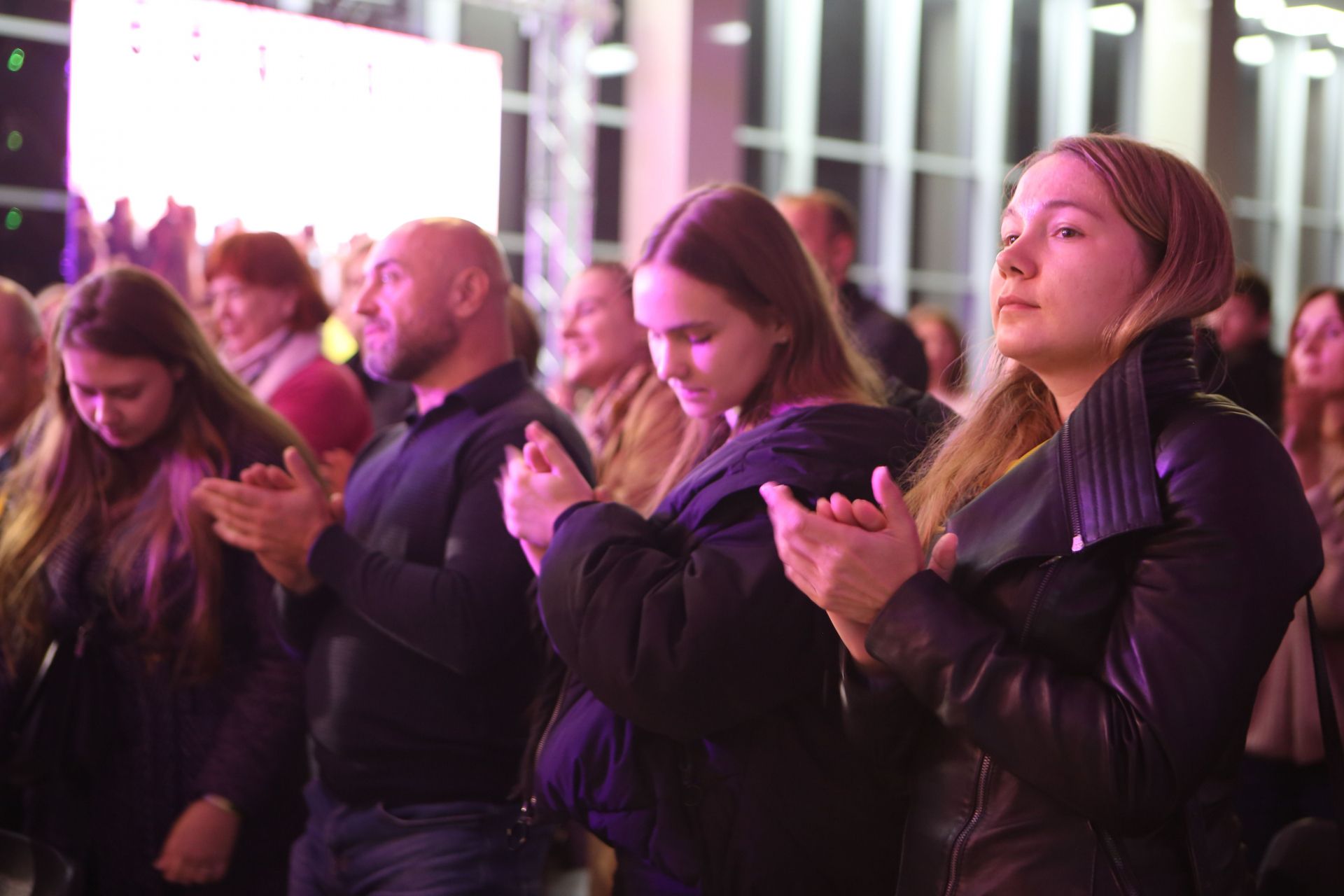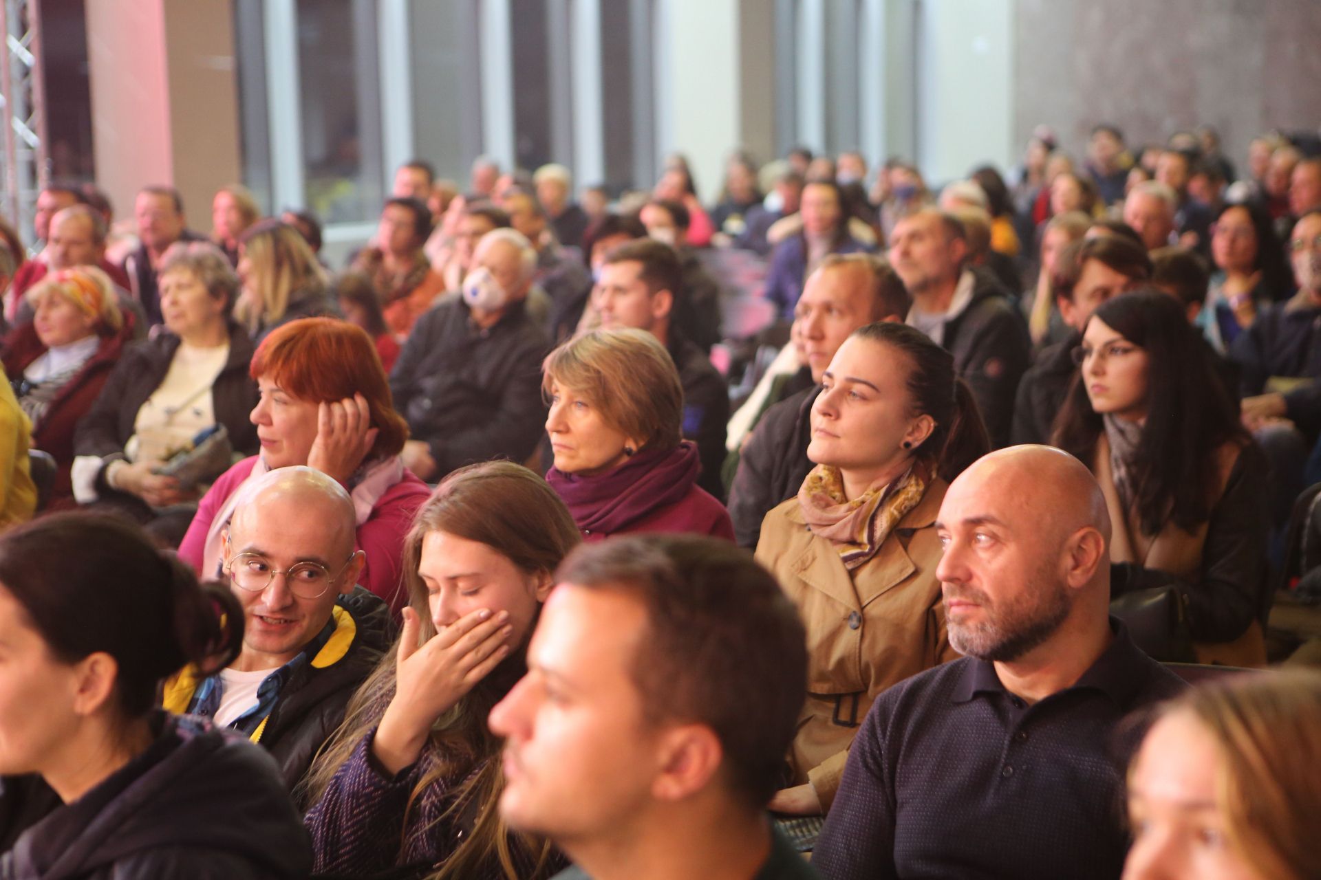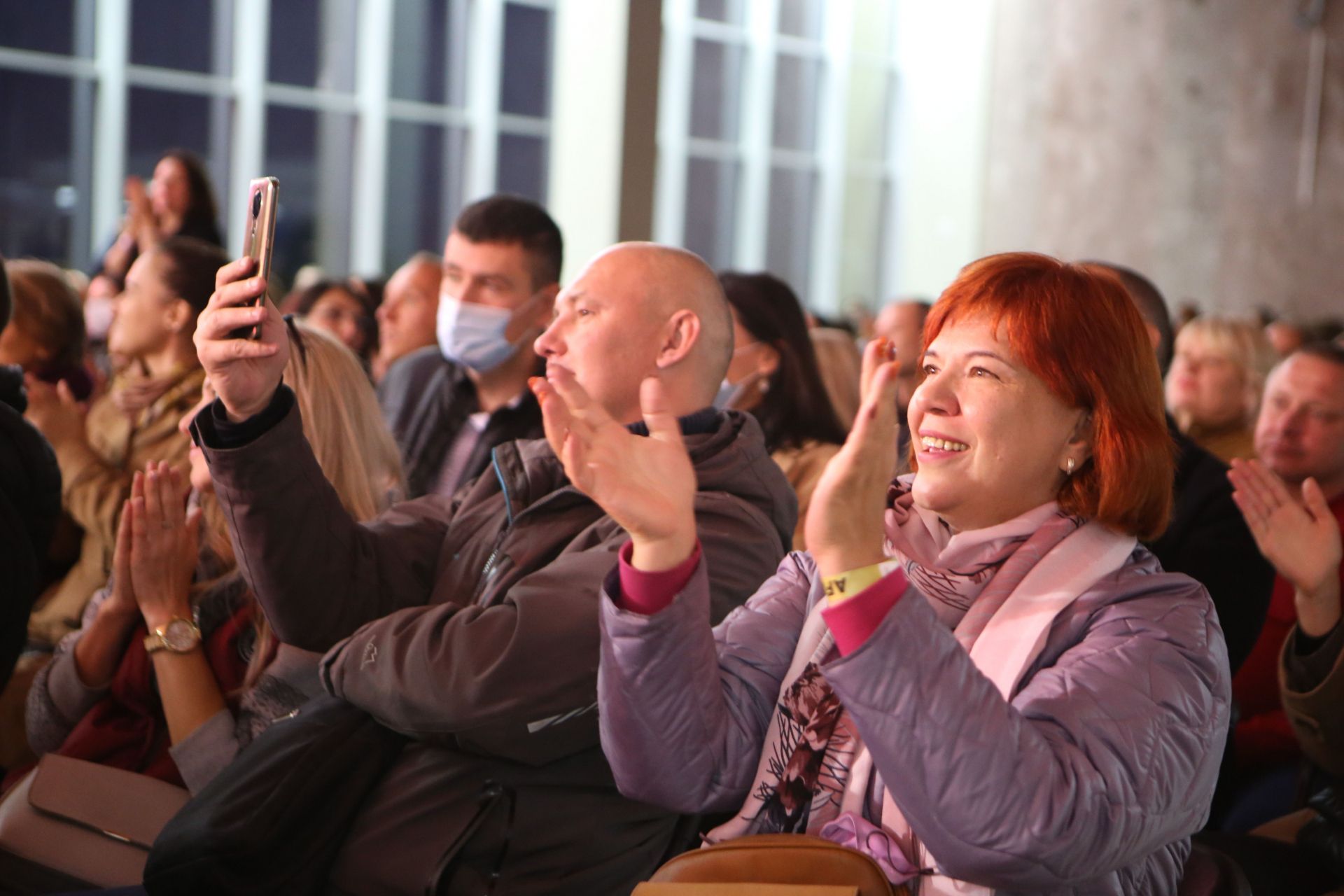 — Я був на багатьох фестивалях, але з інструментом вперше. Хвилююсь, — наражається на оплески присутніх Олексій Коган. — Вінниця для мене це не фонтани, і не зала «Плеяди». Це насамперед люди: Ірина Френкель (продюсерка фестивалю, — авт.), Павло Третьяков (директор фестивалю, — авт.), — без цих людей не можна уявити Vinnytsia JazzFest, — знову оплески.