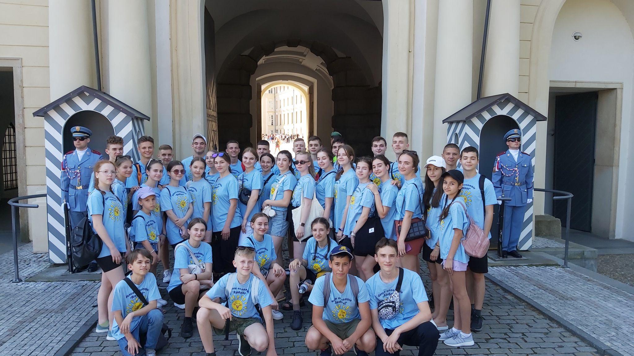 Також вінничани побували у славному місті Прага. На виході з Карлового мосту на будівлі висить величезний прапор України, на якому написано: «Забери руки від України, Путін!».