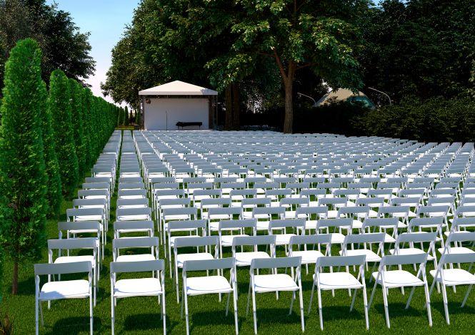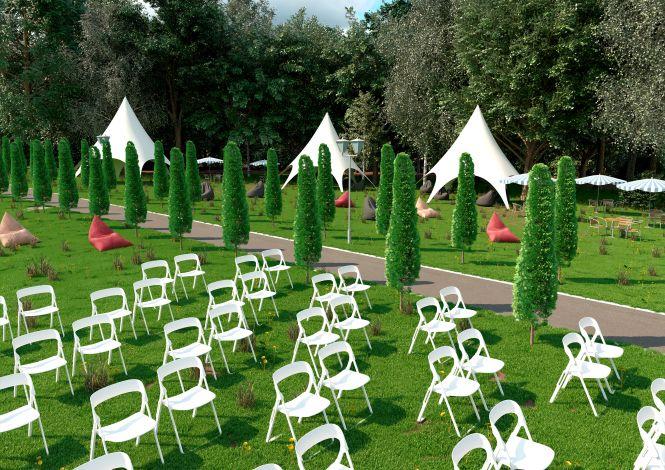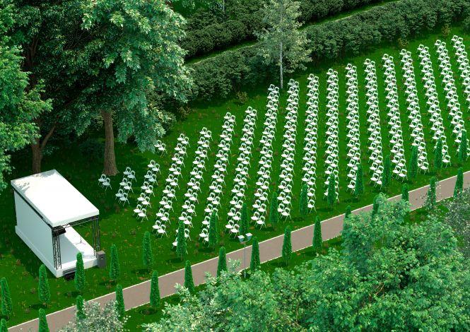 На великій галявині, одразу поруч з центральною алеєю садиби, буде розміщена велика сцена і комфортний партер на 500 місць.
