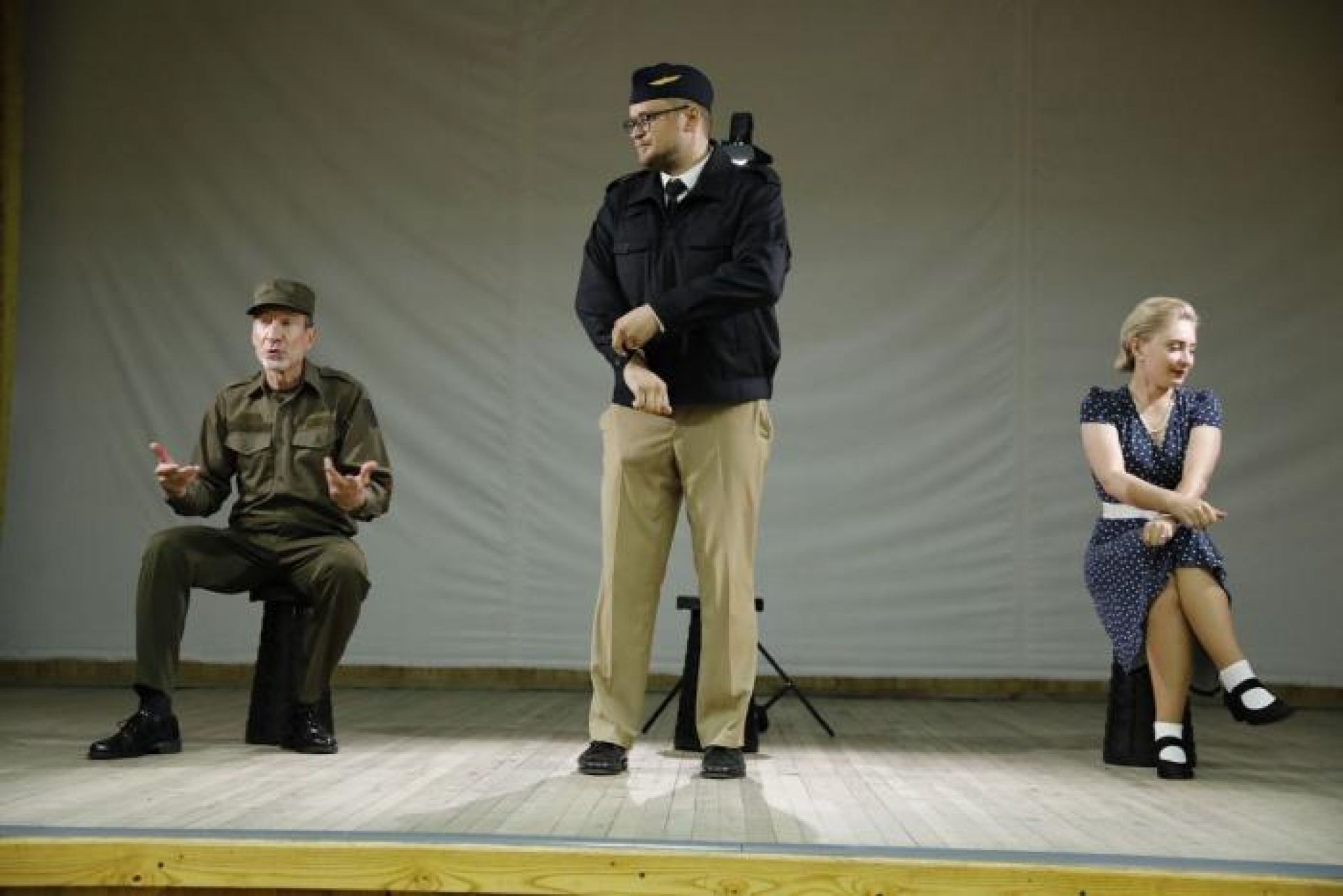 У виставі грають всього чотири актори (Олександр і Любов Єременки, Олександр Сугак та Олександр Малий), але завдяки оригінальній мистецькій побудові вистави і постійному спілкуванню із публікою, вони за годину вистави дають відповіді на одні з найважливіших питань теми «Людина і війна».