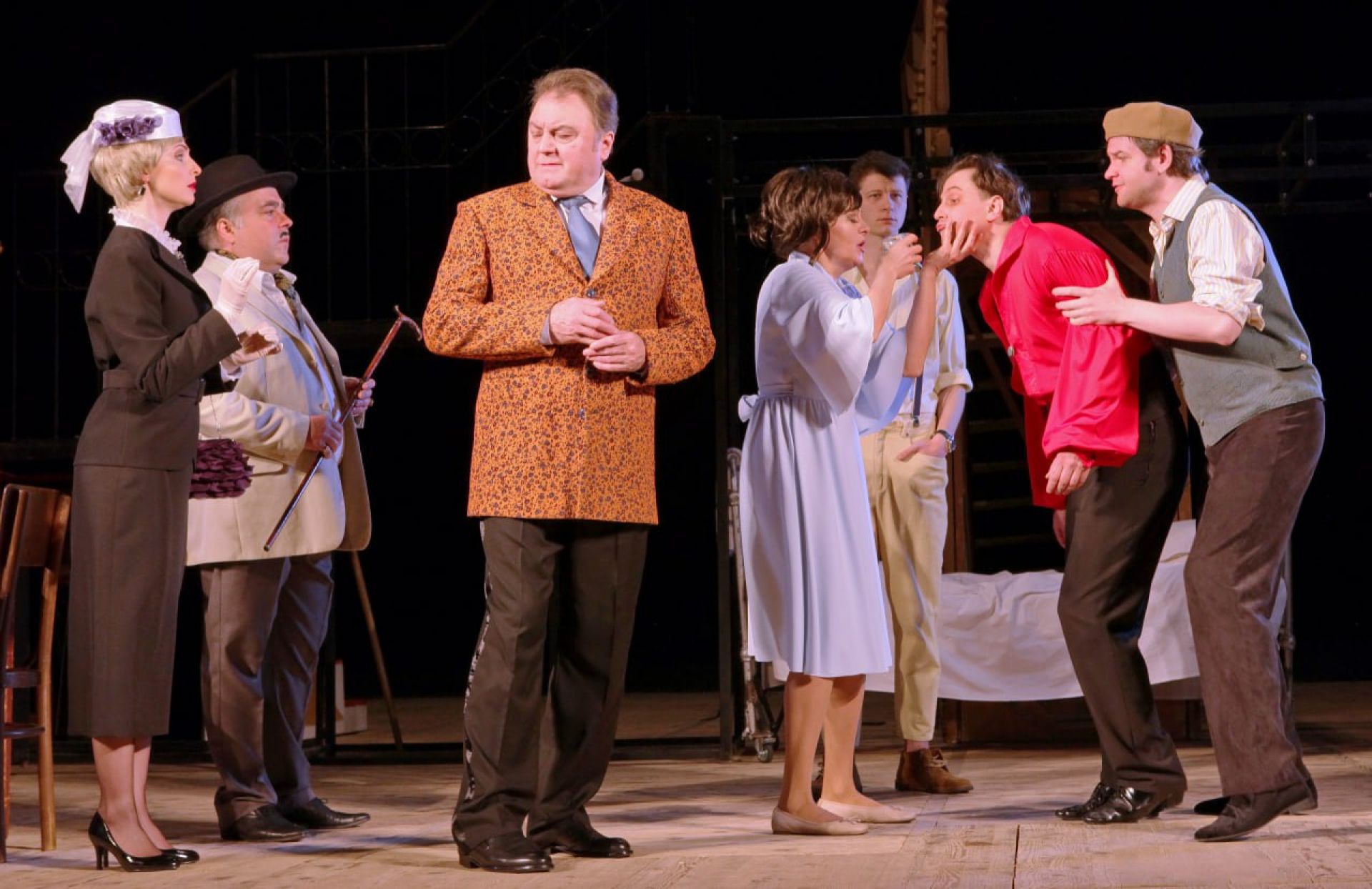 У прем’єрі грають народні артиста України Анатолій Вольський і Валерій Прусс, заслужені артистки України Любов Остапчук, Наталя Шолом і Олена Пархоменко, Олена Шамрай, Анна Маслянко, Анна Махаммедова, Михайло Крисов, Олександр Радько, Микола Андрушко, Вікторія Немченко і Тетяна Фролова, Володимир Старовойт і Юрій Зозуля, заслужений артист України Максим Какарькін і Богдан Костюк, Валентина Наталушко і Анна Положенко, Володимир Олефір, Володимир Холкін, Артур Константинов, Олексій Головач і Влад Матвійчук, Андрій Побережний та Микола Коломієць.