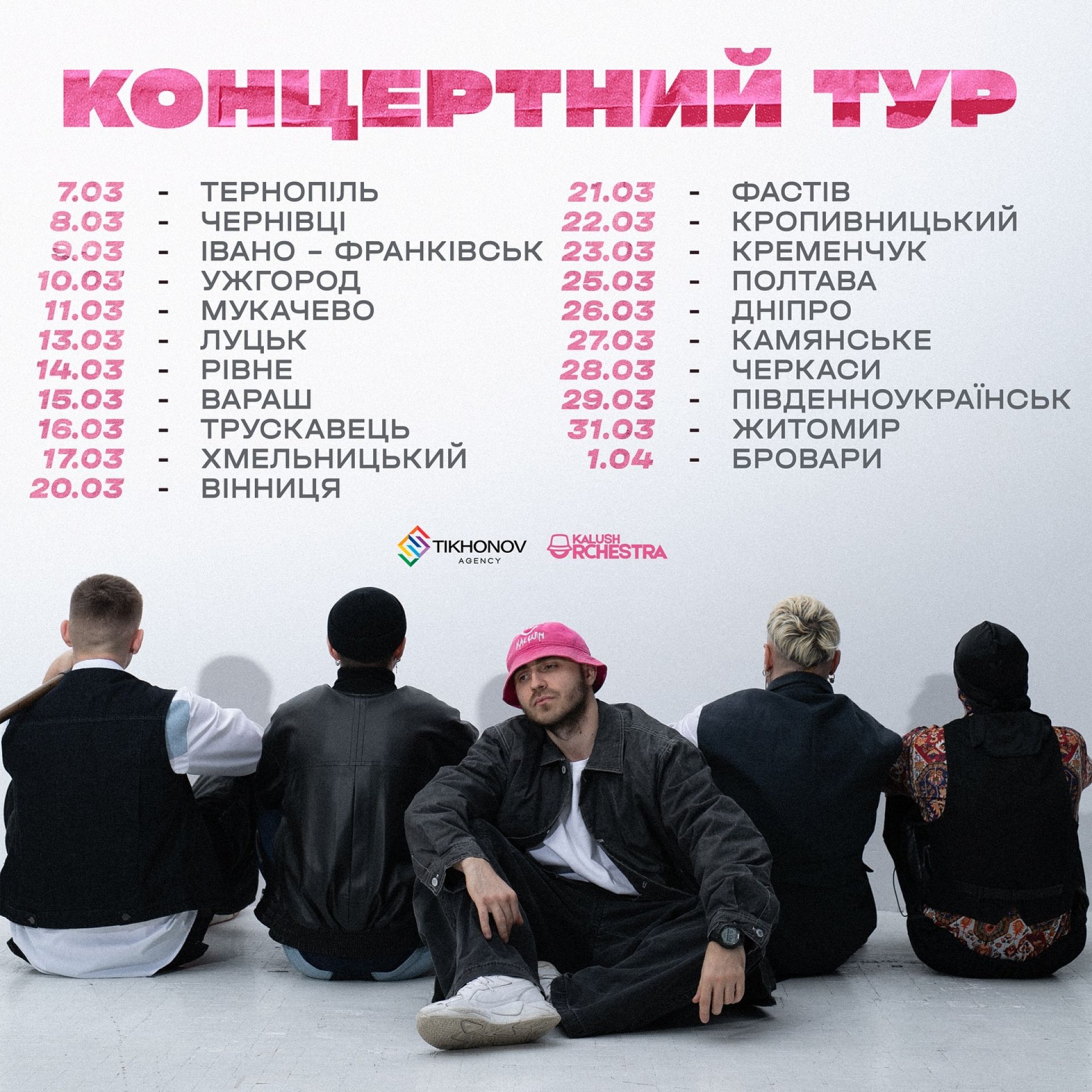 — Йо! Відчувається, ніби в нас зараз дуже багато різних концертів. Але я тільки недавно усвідомив, шо реальний великий та масштабний тур Україною у нас був ще до перемоги на «Євробаченні». Відповідно це було декілька років назад. І так, якщо порефлексувати, то скіл і левел Оркестри тих часів і зараз, дуже різні. І це шоу, яке у нас є зараз, взагалі не можна ні з чим порівнювати, — ділиться Kalush. — Відвідати наш концерт, це прийти не просто на ваші улюблені пісні чи хіти, це більше про саме шоу, сам перформанс та подію. Це про побачити щось цікаве! Це, канешно, може бути навіть трохи провокативно, але я би це швидше порівняв з походом в театр або цирк. Тобто ми розробили шоу, в якому кожна секунда, кожен крок, кожен рух має своє місце. Тому навіть якщо ви десь бачили наш концерт, будьте впевнені, в цьому турі будуть такі канци, які ви ніколи, ніде і ні в кого не бачили! Ви точно не могли навіть уявити нас в таких амплуа. Те, що відбувається на концертах, складно передати словами. Дуже багато нового і неочікуваного від нас! Кароч, скоро побачимось!