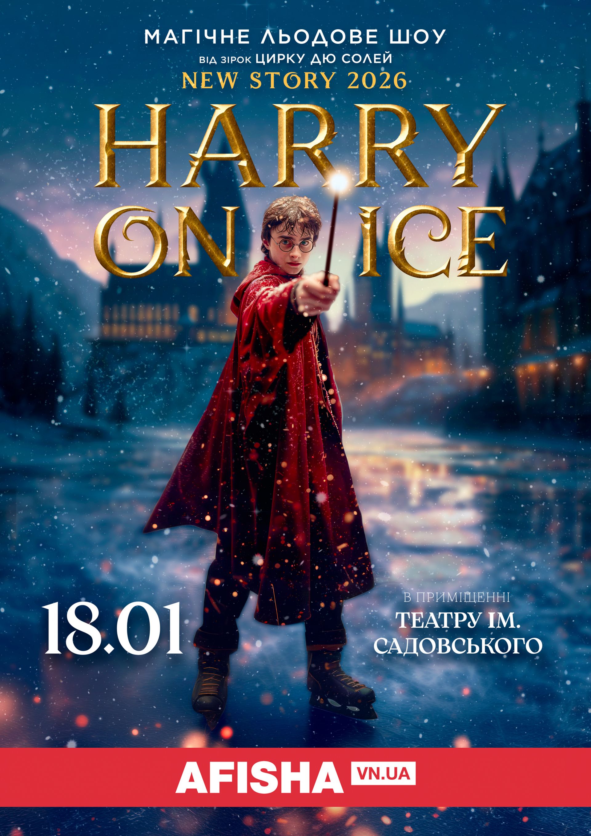 — «HARRY ON ICE 2026» — феєрична постановка на межі фізичного театру та цирку, комедії та магії, що поєднує циркове мистецтво, хореографію та фігурне катання в єдине шоу на льодовій арені, яка спеціально створюється на сцені кожної зали, — розповідають організатори. — Це не епізод з хронік Хогвардсу, а цілісна історія, яка розпочнеться вже у фоє театру! Пройшовши крізь платформу 9 3/4, глядачі опиняться в школі чародійства та магії. Й завдяки видовищним номерам, сучасним світловим ефектам та оригінальному музичному супроводу проживуть всі етапи разом з артистами. Будьте готові вболівати за улюблений факультет на грі в квідич, взяти участь у битві з Темним Лордом, і, звісно, переможцями відвідати святковий бал!