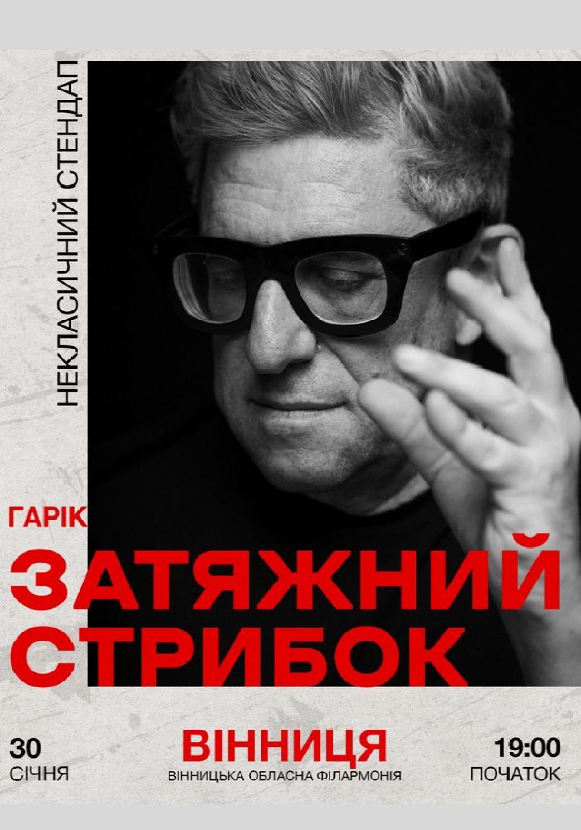 30 січня о 19.00 у Вінницькій обласній філармонії Гарік Корогодський вийде на сцену без фільтрів і без табу. Його «Затяжний стрибок» — це не просто стендап, а відверта сповідь, де сміх і самоіронія переплітаються з болем, любов’ю та роздумами про життя.