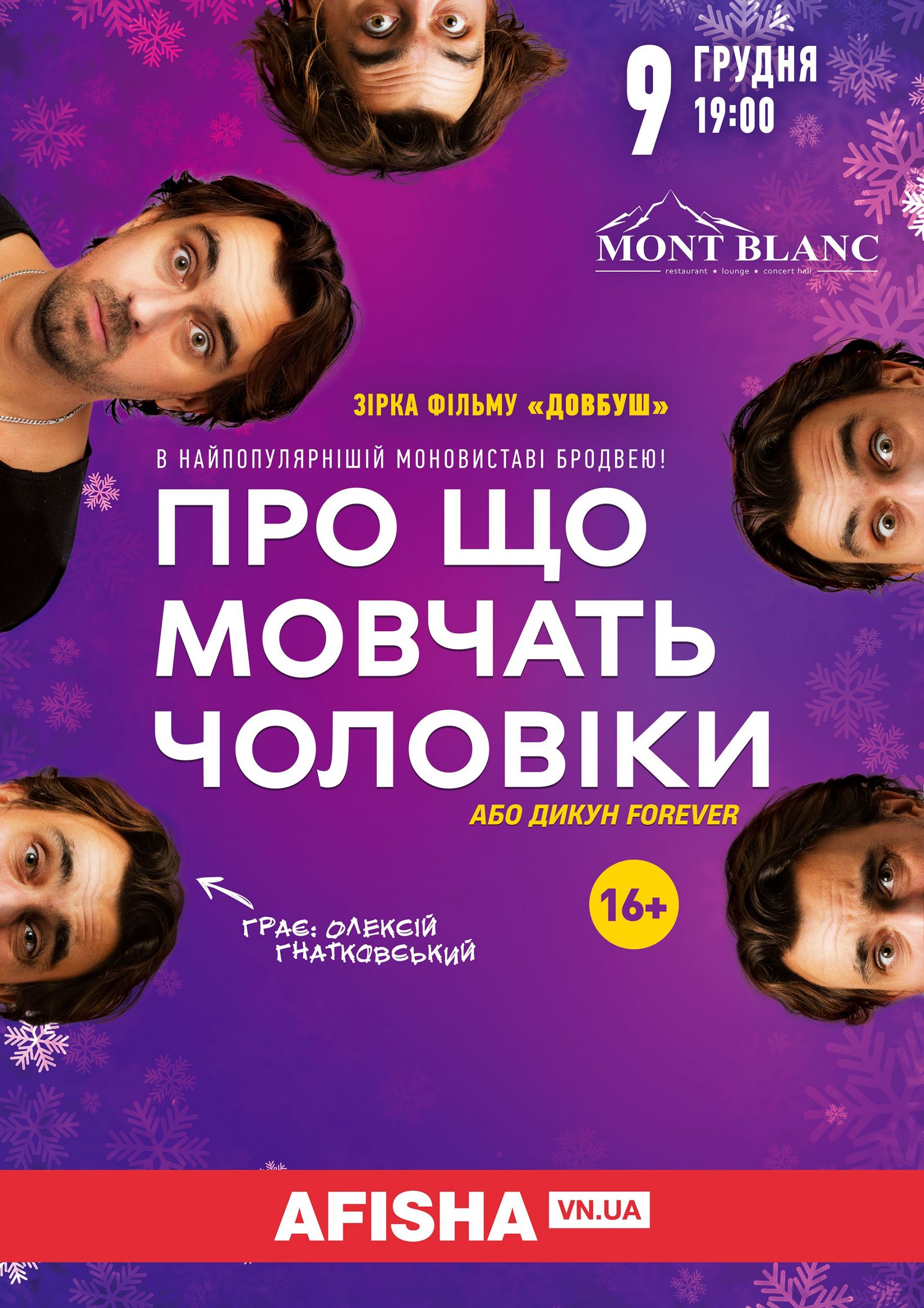 Неперевершений і харизматичний Олексій Гнатковський — той самий Іван Довбуш, що став найбільшим відкриттям і скорив серця всіх глядачів, що бачили найгучніший український фільм цього року, 9 грудня о 19.00 у концерт-холі «Mont Blanc» чекає всіх на виставі про любов і стосунки «Про що мовчать чоловіки».