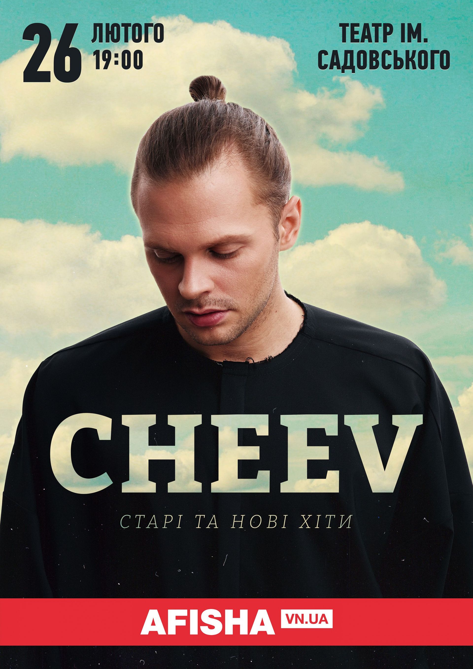 Один із найпопулярніших сучасних співаків, стильний і талановитий CHEEV 26 лютого о 19.00 у театрі ім. Садовського подарує Вінниці незабутній вечір, сповнений чуттєвого вокалу, емоційної лірики і сучасних танцювальних хітів.