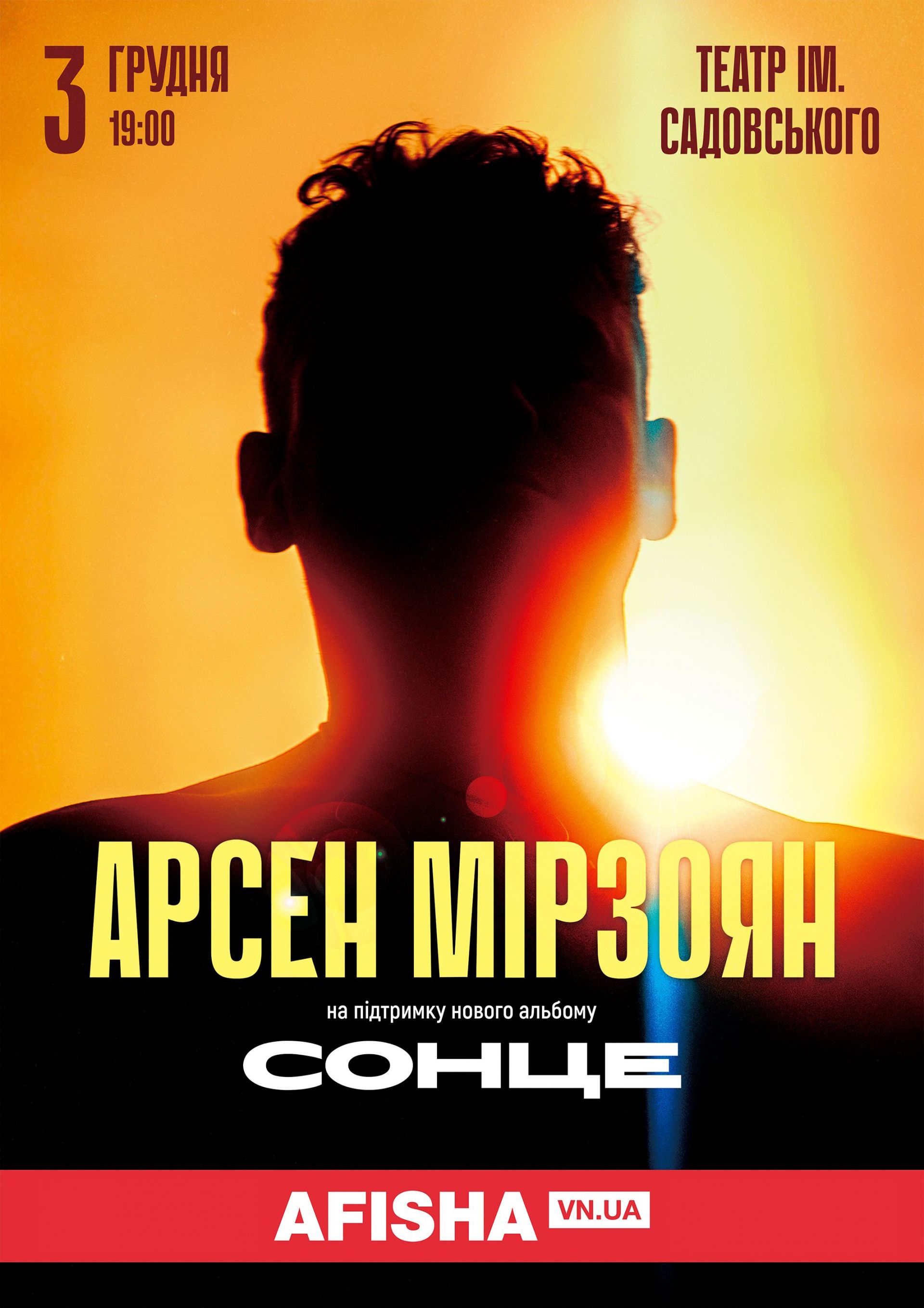 Серію зимових концертів у Вінниці 3 грудня о 19.00 у театрі ім. Садовського розпочне один із найхаризматичніших співаків України Арсен Мірзоян.