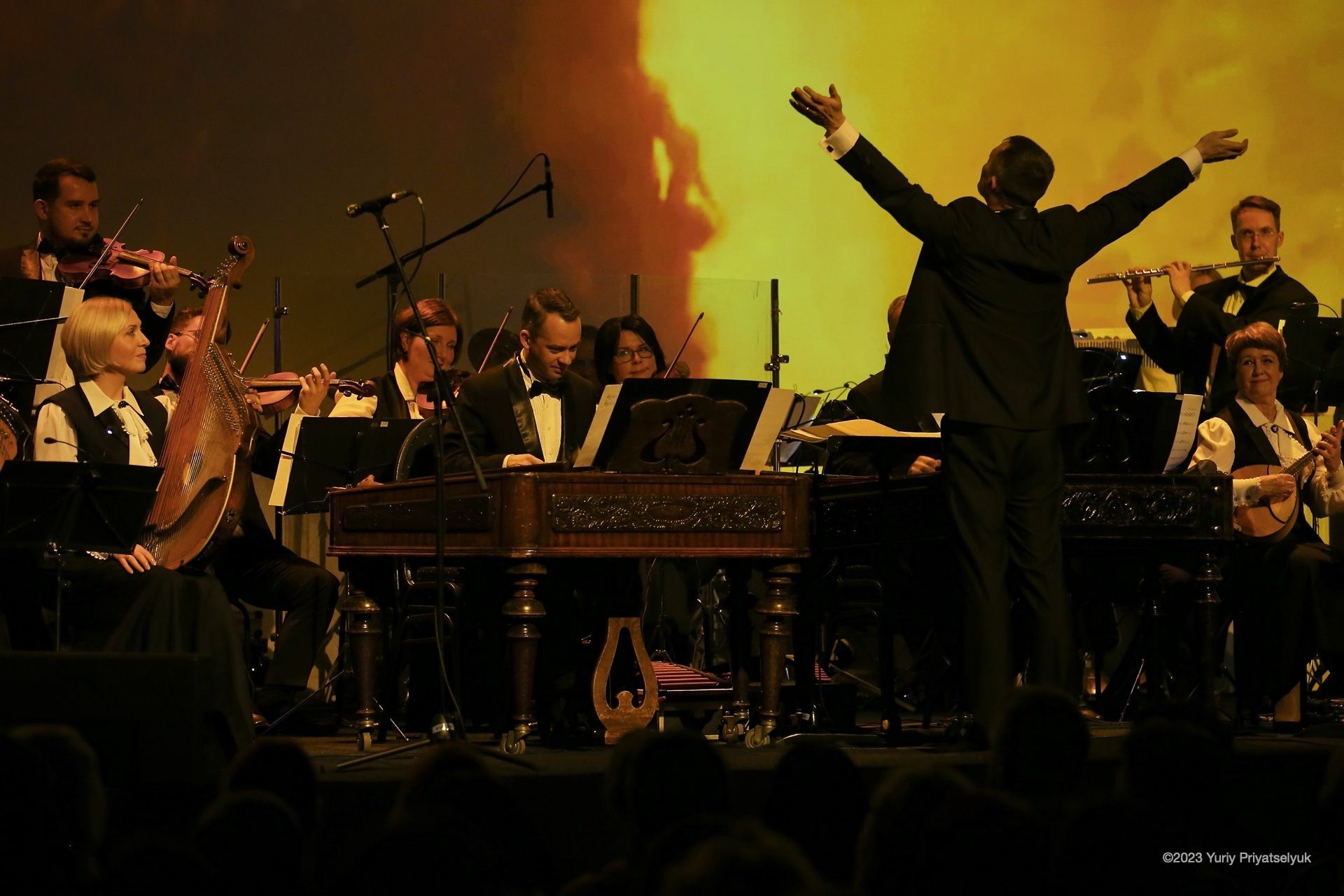 Найкращі новорічні саундтреки та різдвяні композиції, а також легендарний український фольклор почуємо у приголомшливому виконанні на унікальних українських народних інструментах, яких на концерті буде більше 40! Цимбали, кобзи, скрипки, басоля, ліра, тилинка, зозульки, свиріль, козобас, бугай, флояра, дримба, рубель, качалка, бубон, береста — подібного набору інструментів не має жоден професійний колектив у світі.