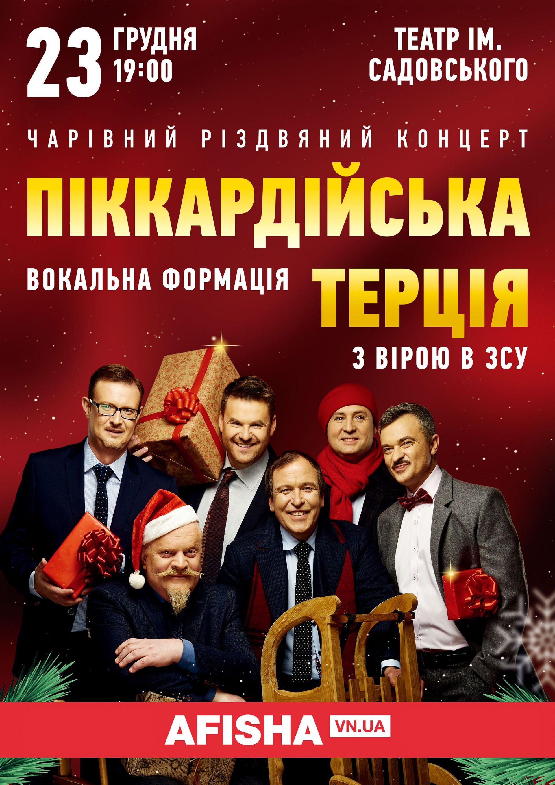 Напередодні Святвечора, 23 грудня, о 19.00 у театрі ім. Садовського легендарна вокальна формація «Піккардійська Терція» подарує Вінниці «Чарівний Різдвяний концерт» і безмежну красу своїх голосів, що скорили весь світ.