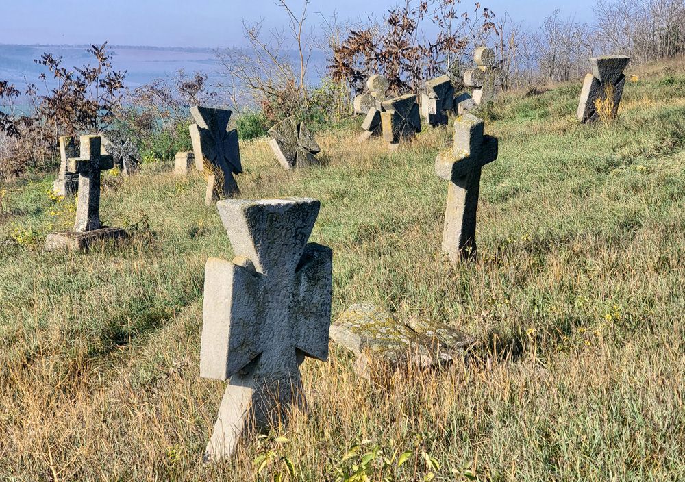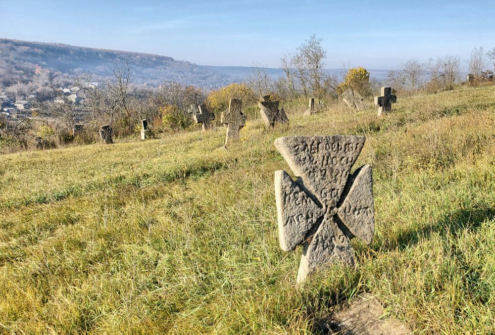 Древні могили, що зрослися з землею, позначені масивними хрестами, виготовленими із піщаника. Хрести різних форм: мальтійські (козацькі), з колом посередині і «треф». Вони добре демонструють, як з бігом часу змінювалась у цих краях культура обробки каменю. На деяких навіть можна прочитати написи. Це один із небагатьох цвинтарів України, які включені у Державний Реєстр пам’яток – 99% давніх некрополів у Реєстр не включені.