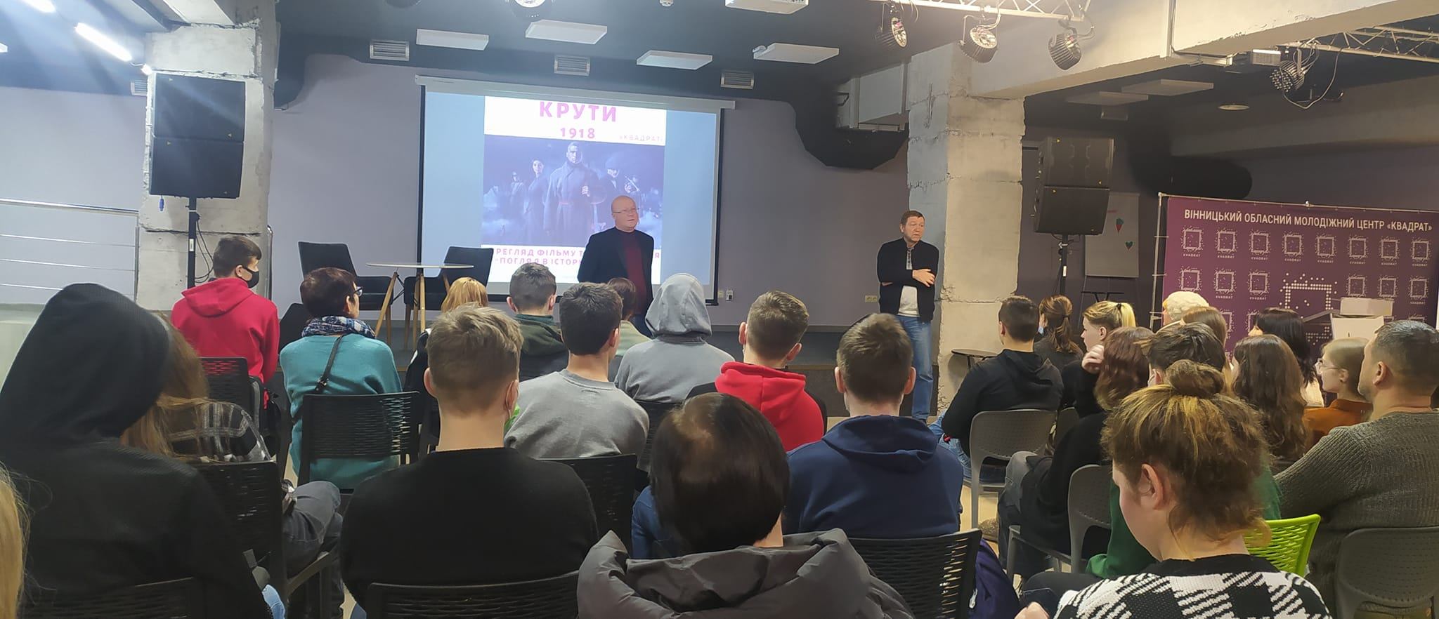 Із кандидатами історичних наук — професором Павлом Кравченком і доцентом Анатолієм Войнаровським з Вінницького педагогічного університету ми зустрічаємося на показі фільму «Крути 1918» у молодіжному центрі «Квадрат».