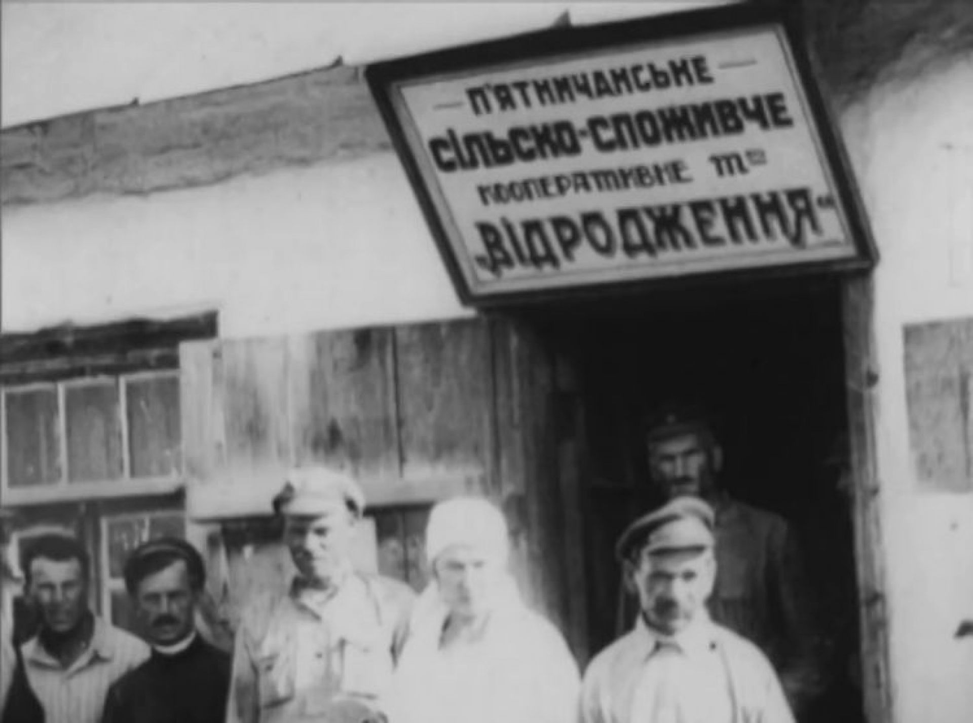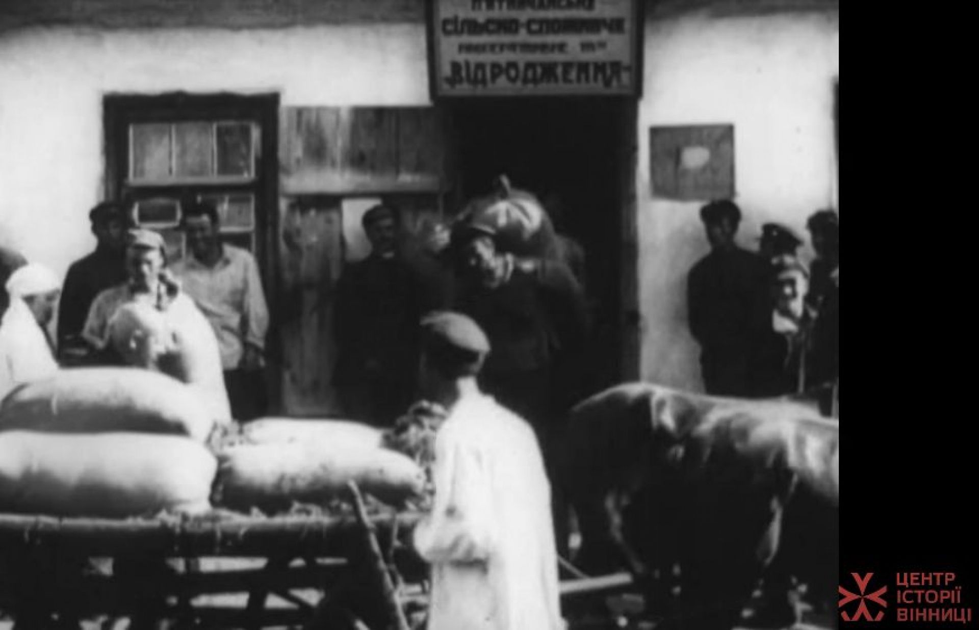 — Перед нами кінець літа чи початок осені 1929 року, «П’ятничанське сільсько-споживче кооперативне товариство «Відродження», — починає розповідати працівниця Центру історії Вінниці Олеся Коваль. — На момент фільмування тривала перша п’ятирічка, відбувалась активна індустріалізація, а також реалізовувалась політика створення колективних господарств. У цьому процесі споживчі товариства перетворюються на органи розподілу продовольчих ресурсів під керунком більшовиків.