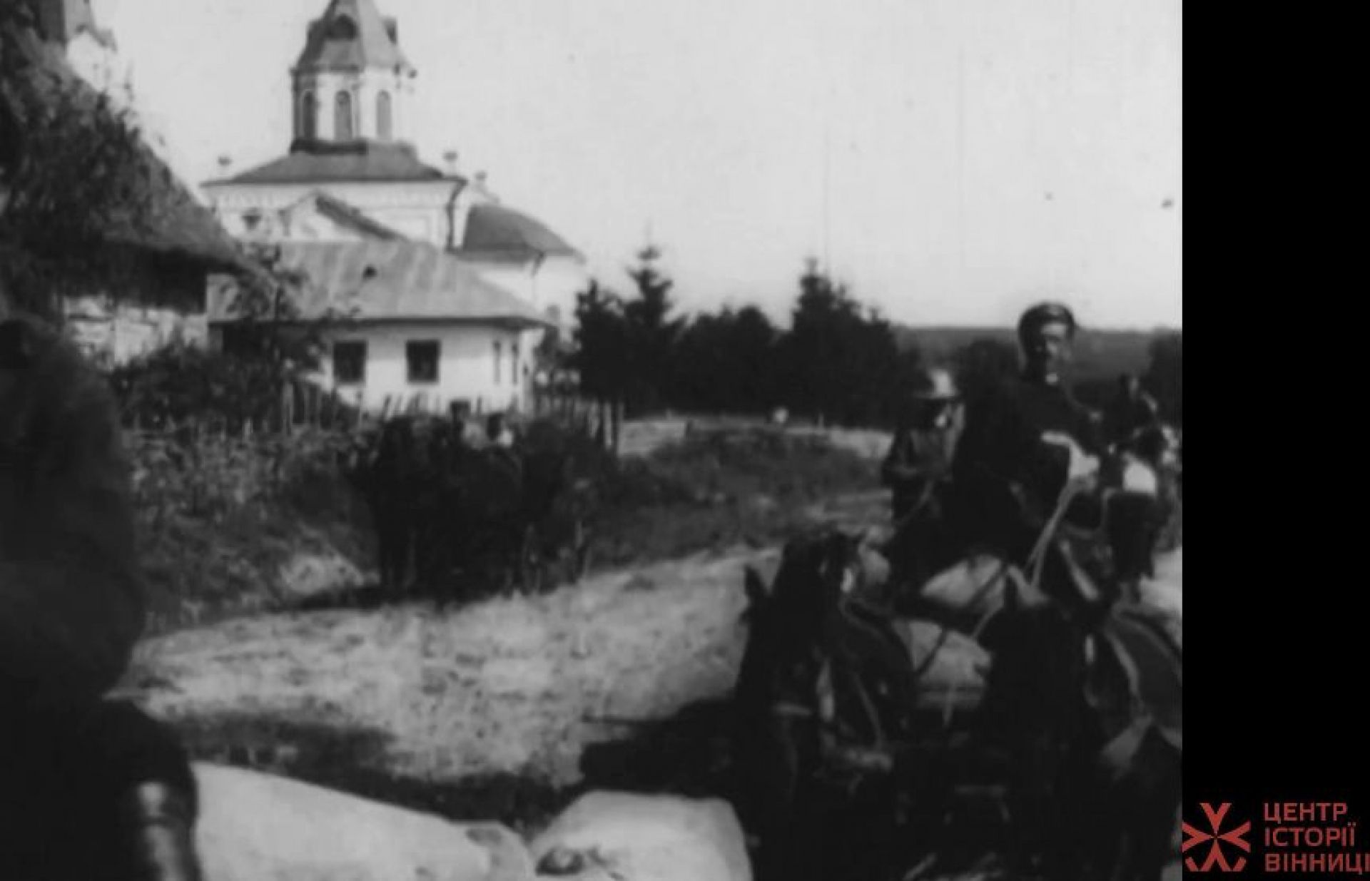 — Завдяки тому, що ця культова споруда зафільмована у кінохроніці, ми розуміємо, що зйомки відбуваються саме у П’ятничанах, і усвідомлюємо напрямок руху цієї колони. На наступних кадрах видно, що минаючи храм, підводи рухаються до середмістя Вінниці сучасною вулицею Івана Богуна, — додає вона.