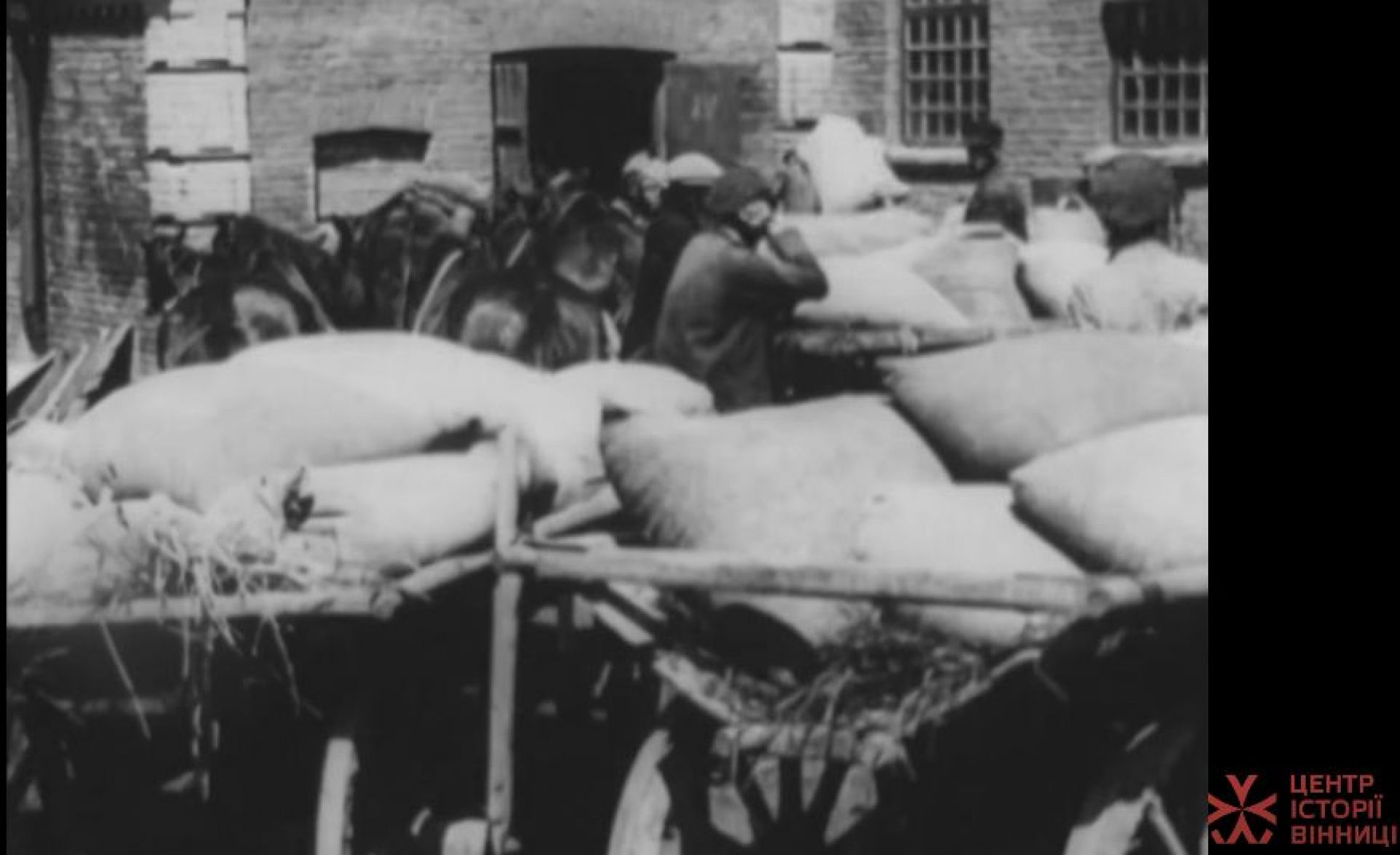 — На той момент Союзхлібом називали вінницьку міжрайонну контору державного об’єднання, яка займалась заготівлею зернових, бобових, круп’яних і фуражних культур. На кадрах ми бачимо вози, які прибули до млина і власне робітників, які розвантажують мішки для подальшої переробки, — говорить далі Олеся Коваль. — Якщо ми припускаємо, що всі попередні події відбувалися у Вінниці, то, ймовірно, на кадрах кінохроніки — староміський млин, який на сучасній вулиці Данила Нечая. Там він діяв ще в дореволюційні часи та зберігся до сьогодні.