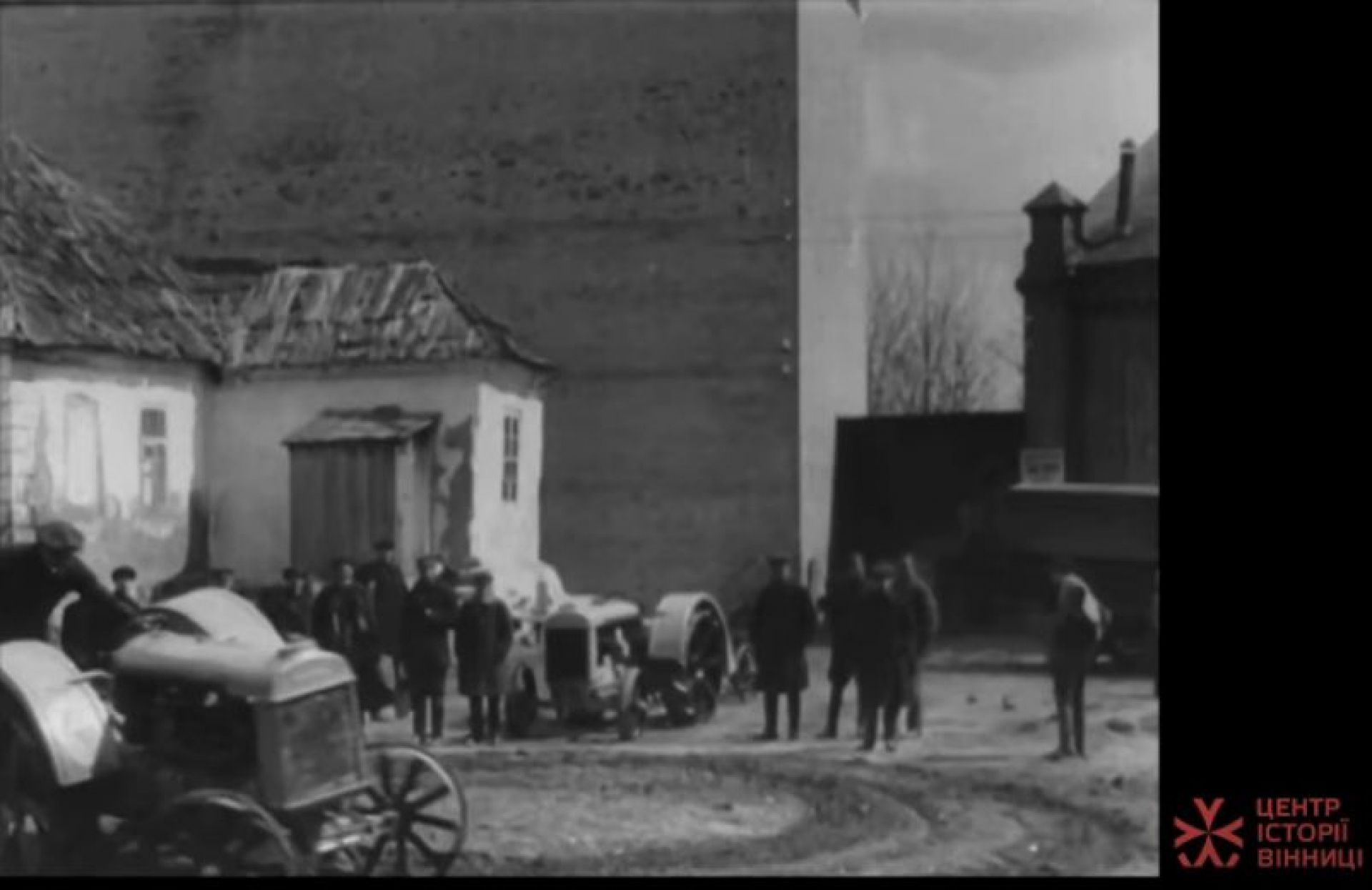 — Ми розглянемо одне із найцікавіших відео, яке тепер є надбанням громадськості — відео зняте у Вінниці 1928 року, — зазначив директор Центру історії Вінниці Олександр Федоришен. — Отож, у нас Вінниця, підготовка тракторів до посівної компанії (кінокореспондент Самойлов). Ми бачимо робітників, які готують трактор і плуг поряд із ним до руху. І тут нашу увагу, перш за все, привертає подвір’я. Із самого початку важко зрозуміти локалізацію цієї території і, мабуть, найнесподіваніше, що перед нами теперішня найголовніша вулиця міста — вулиця Соборна.