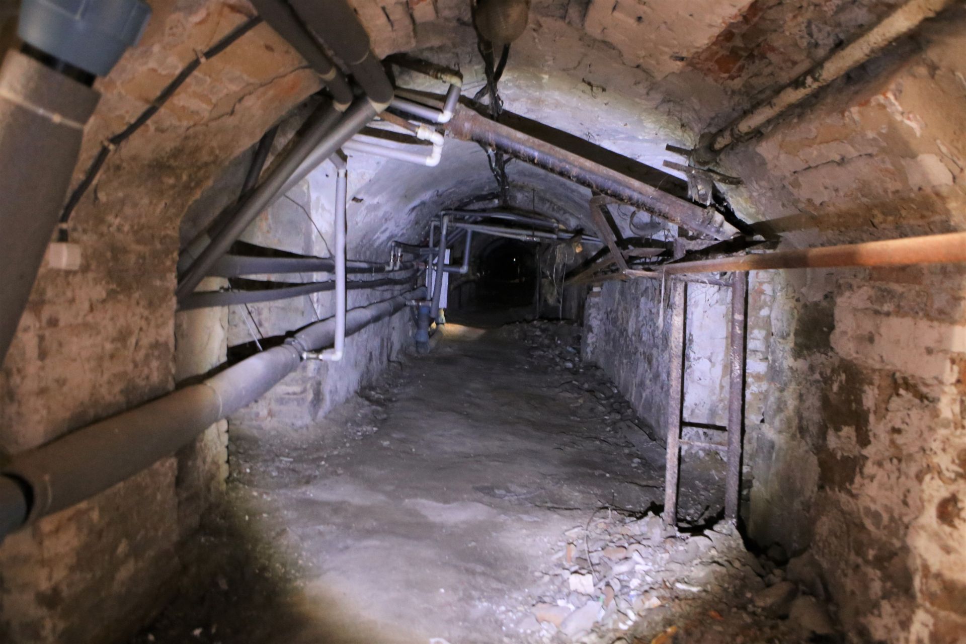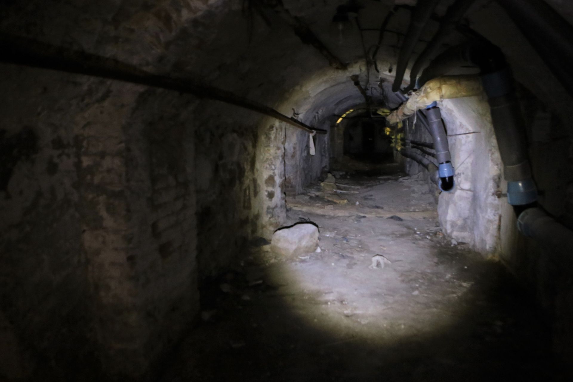 Вмикаємо ліхтарик. В обидва боки від нас простягаються довжелезні тунелі заокругленої форми. Чим далі, тим більше різних відгалужень та кімнатних приміщень. Збудовані вони з цегли та каменю. Але найбільше впадають в очі комунікації. Чи не звідусіль тягнуться довгі нитки металевих, пластикових, широких та вузьких труб.