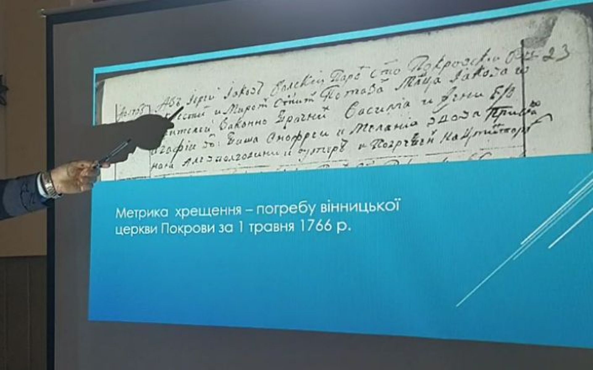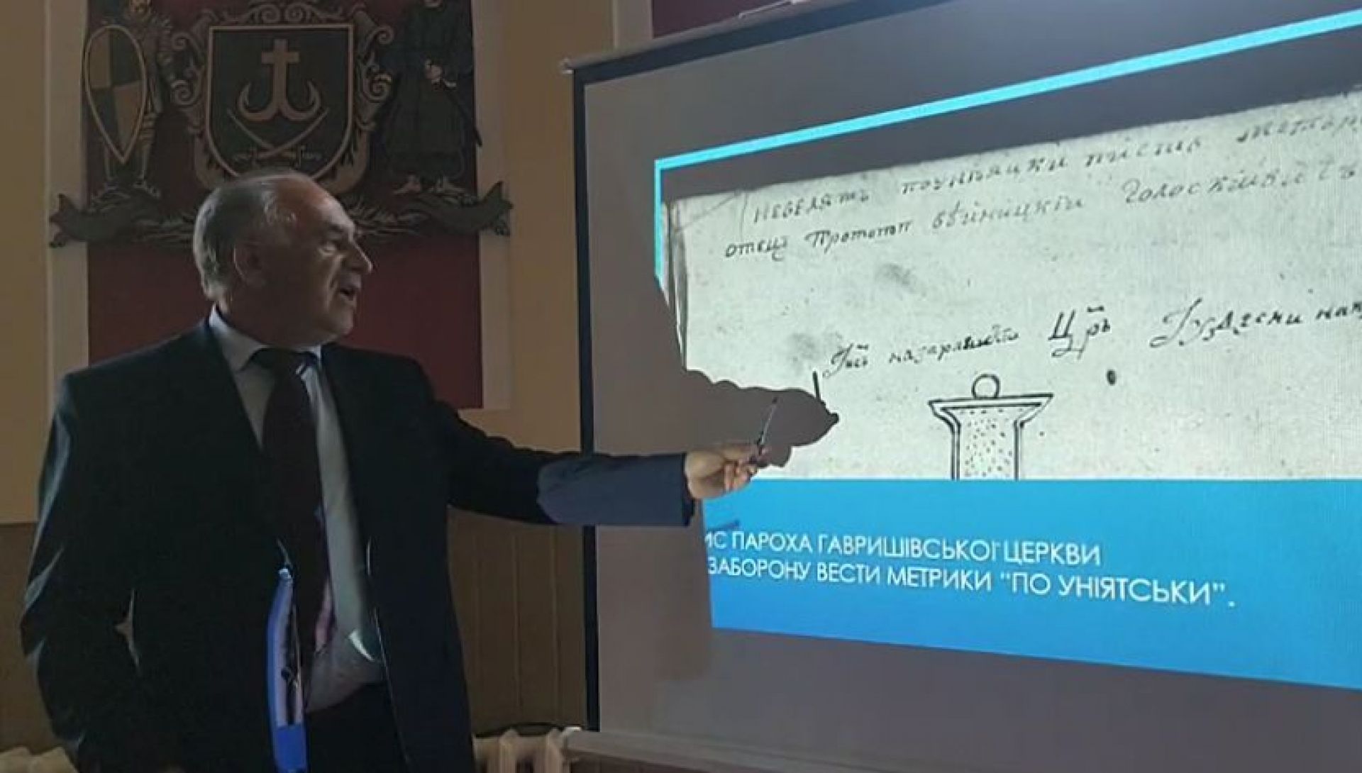 Під час своєї презентації Арсен Зінченко показав фотографії тих старовинних метрик та актів візитації, щоб підтвердити свої слова про тотожність понять «руський» і «український».
