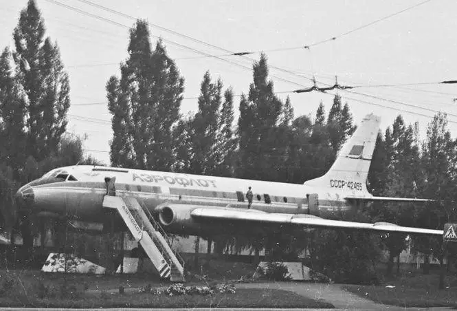 На дитячому майданчику, що навпроти Центрального автовокзалу на Київській, стояв авіалайнер на 100 пасажирських місць ТУ-104А. Після двадцяти років справної роботи був списаний, та переобладнаний під авіапам'ятник, в 80-х роках працював як дитячий кінотеатр.