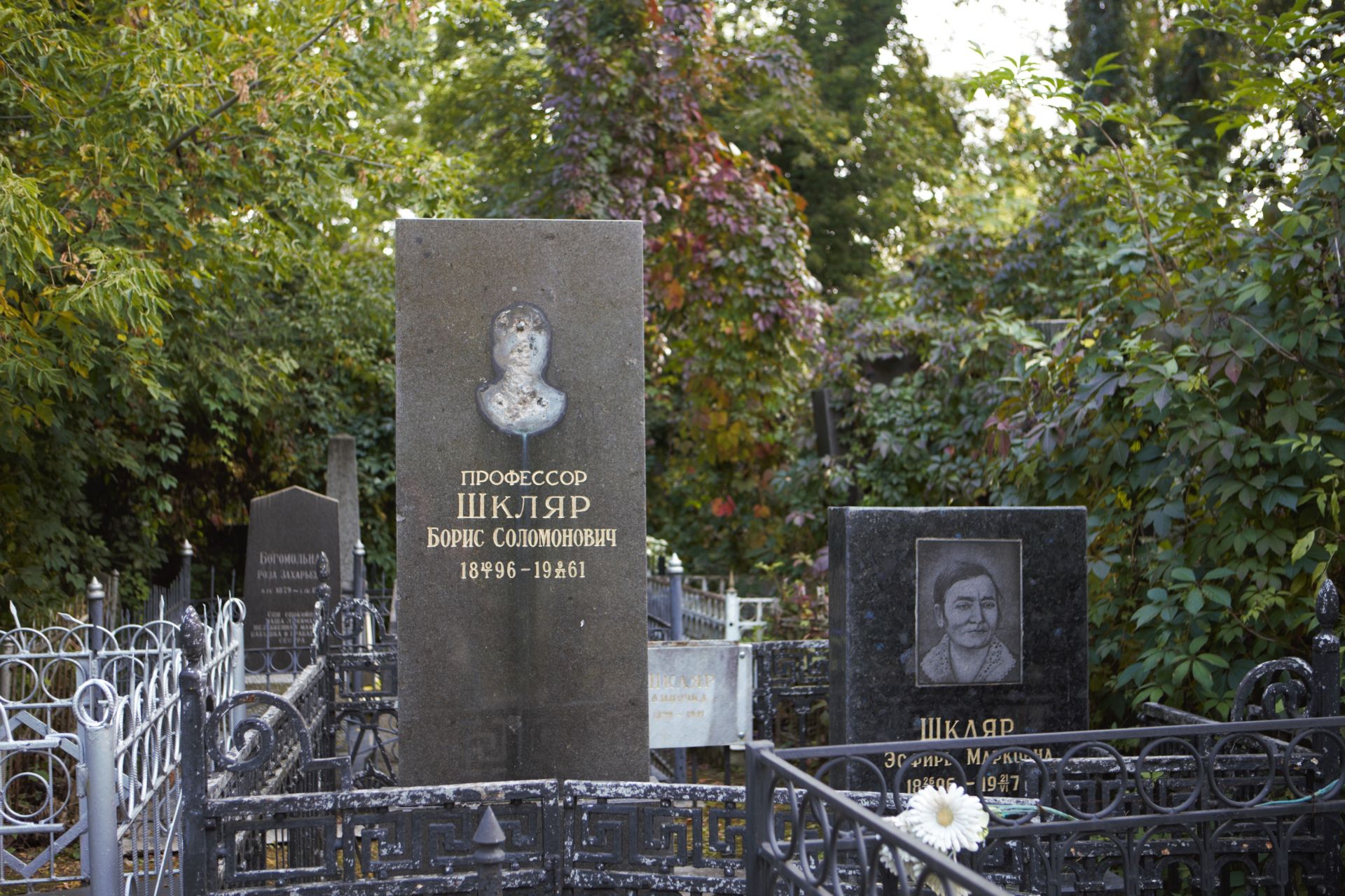 Біля професора похована його дружина Есфірь Марківна. На пошану загиблої доньки там же встановили пам'ятну дошку: «Шкляр Линочка. 1929 — 1941». Де насправді похована донька Бориса Соломоновича невідомо досі.