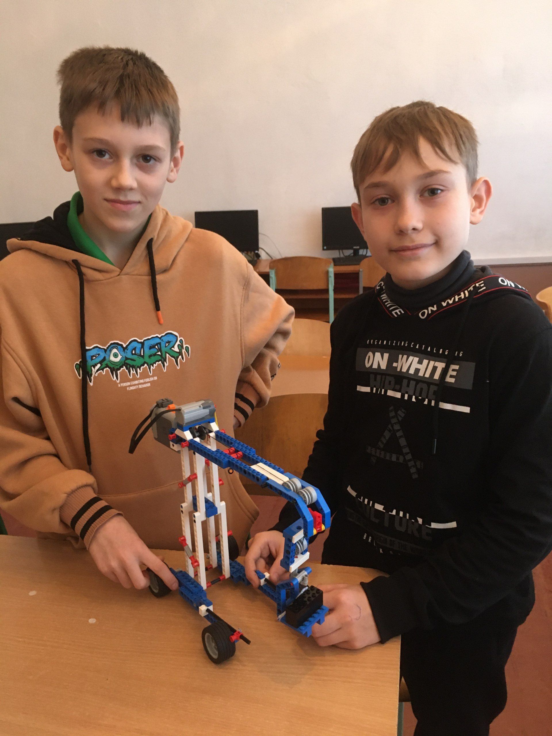 На загальнонаціональному онлайн-конкурсі в березні учнівська команда «Атом» представила робота-екскаватора. «Це був цікавий та захопливий проєкт. Спочатку важливо було розробити план та дизайн. Учні використали деталі LEGO для створення шасі, кабіни й механізмів обертання та підйому. Встановили мотори для керування рухом та обертанням ковша. Додали датчики, які дозволили роботу реагувати на перешкоди. Використали блок-схеми для програмування», — ділиться вчитель інформатики.