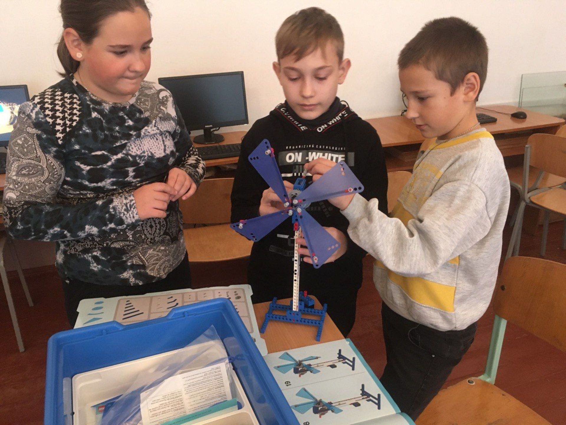Діти вже створили робота-танцюриста, блоху, роборуку, мобільну платформу, вітряк та автомобіль для перегонів. Для школярів навіть влаштовують командні змагання. Учні запрограмували й удосконалили роботизовану блоху, а потім визначали, модель якої команди рухається швидше.