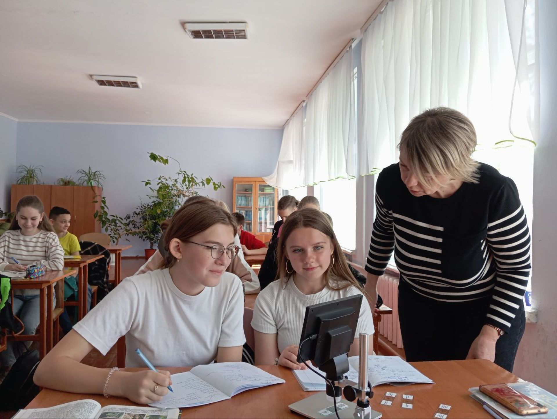 Тож тепер на уроках інформатики та під час гуртка діти працюють з робототехнікою і програмуванням. На географії використовують цифрову метеостанцію для визначення погодних умов — температури повітря, вологості, швидкості вітру.