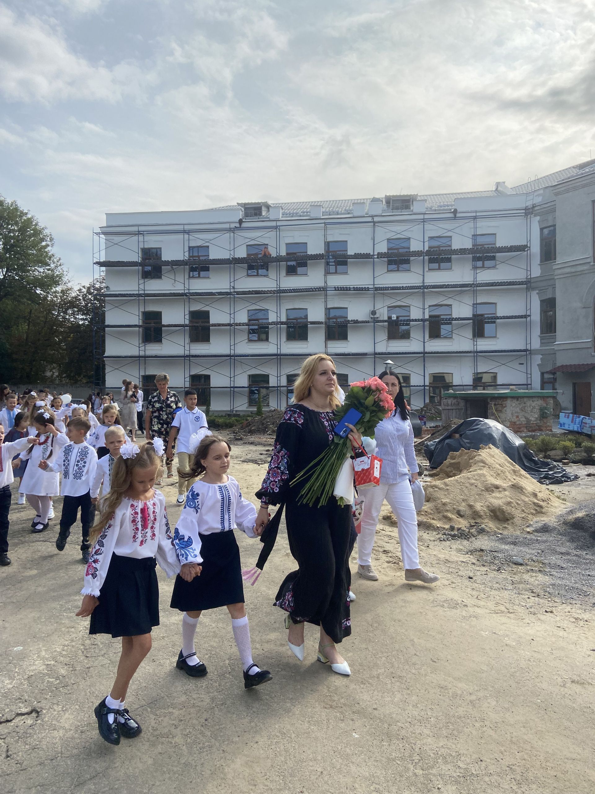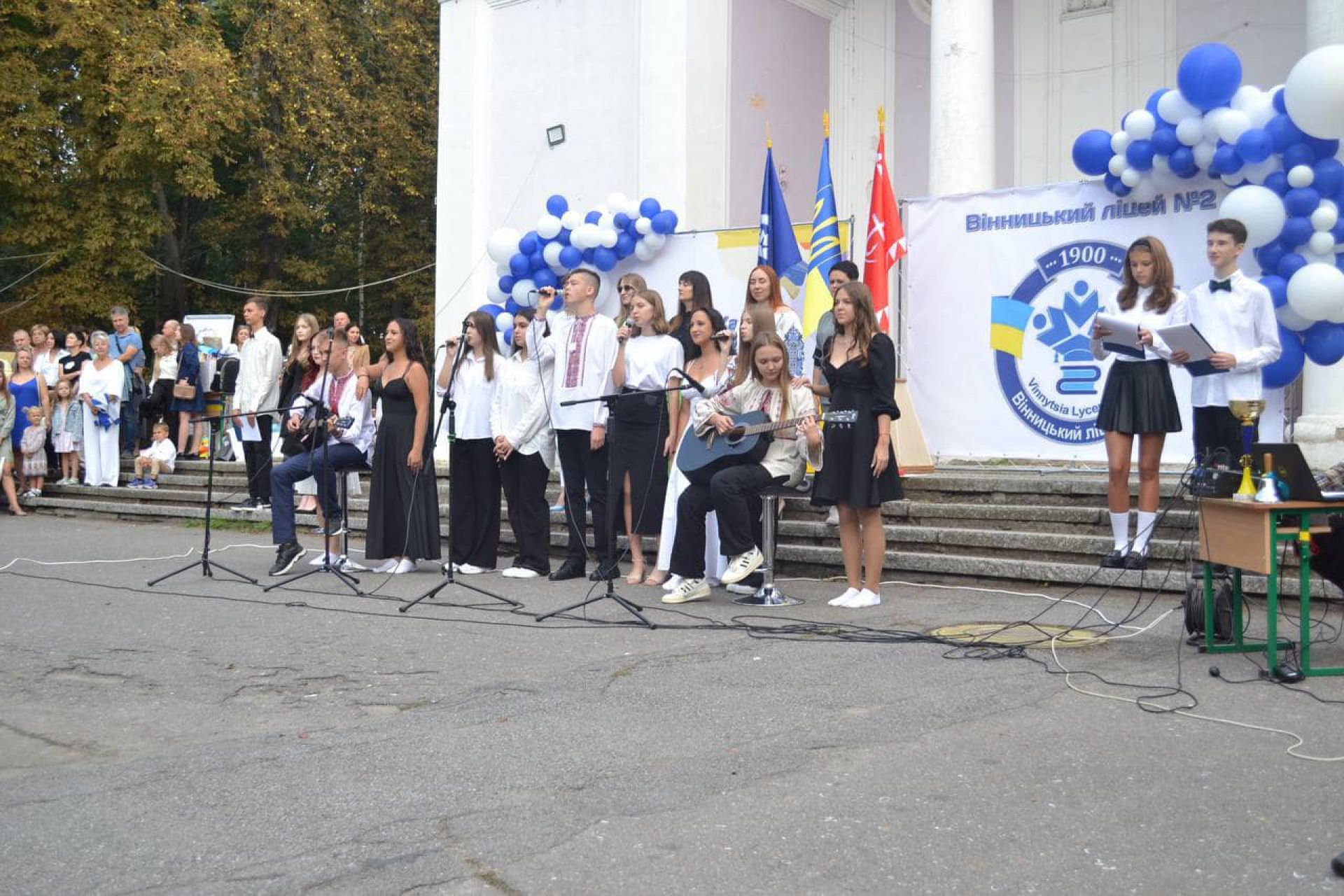 Зараз у дворі Вінницького ліцею № 2 тривають завершальні ремонтні роботи: перед тим, як укладати новий асфальт, там повністю замінюють старі комунікації — труби, яким понад 60 років. Тож свято 1 вересня для ліцеїстів влаштували на площі біля Літнього театру у Центральному парку імені Леонтовича.