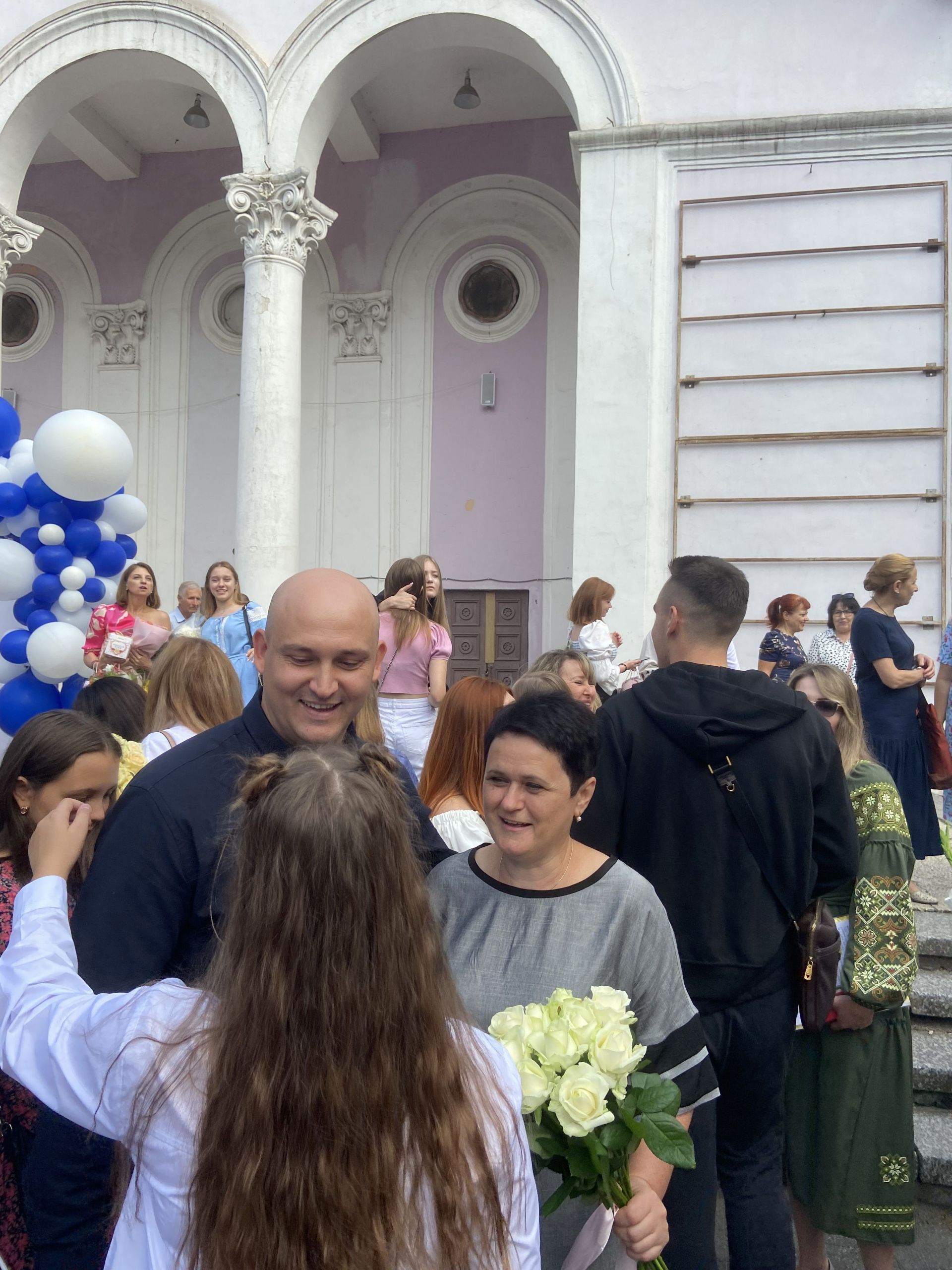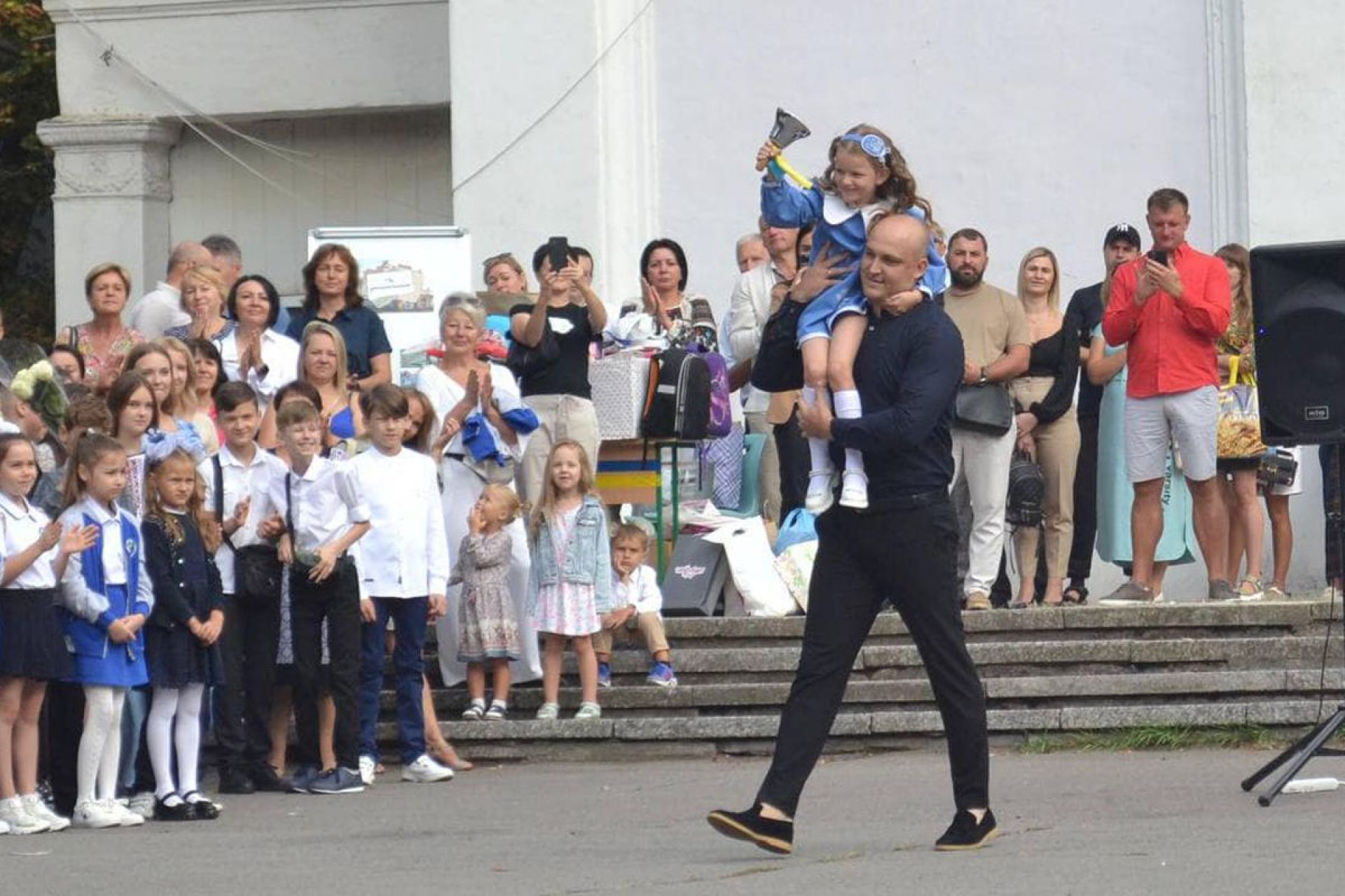 Незабутньою, зворушливою миттю для усіх став особливий перший дзвоник, який із донечкою Анечкою дав вчитель-захисник, учасник АТО і з найперших днів повномасштабної війни воїн ЗСУ Віталій Васильович Шикір.