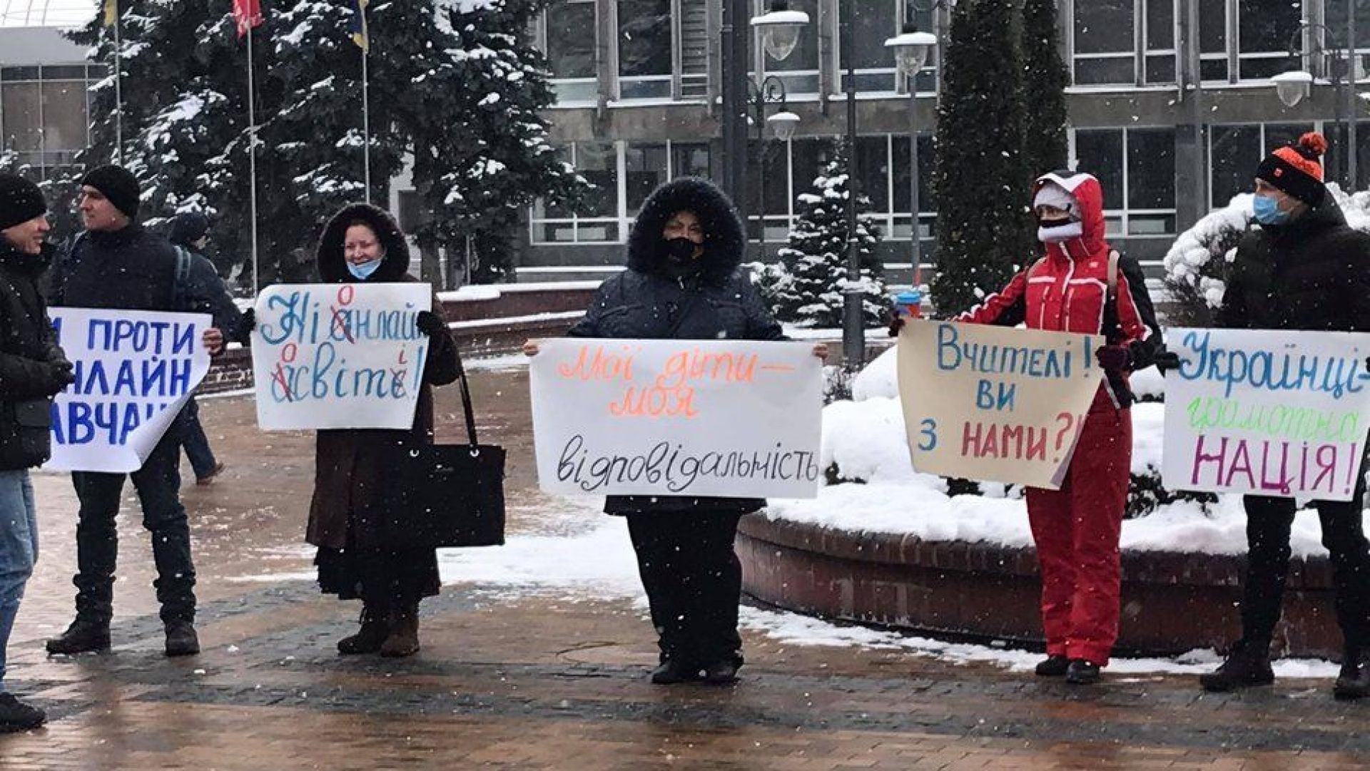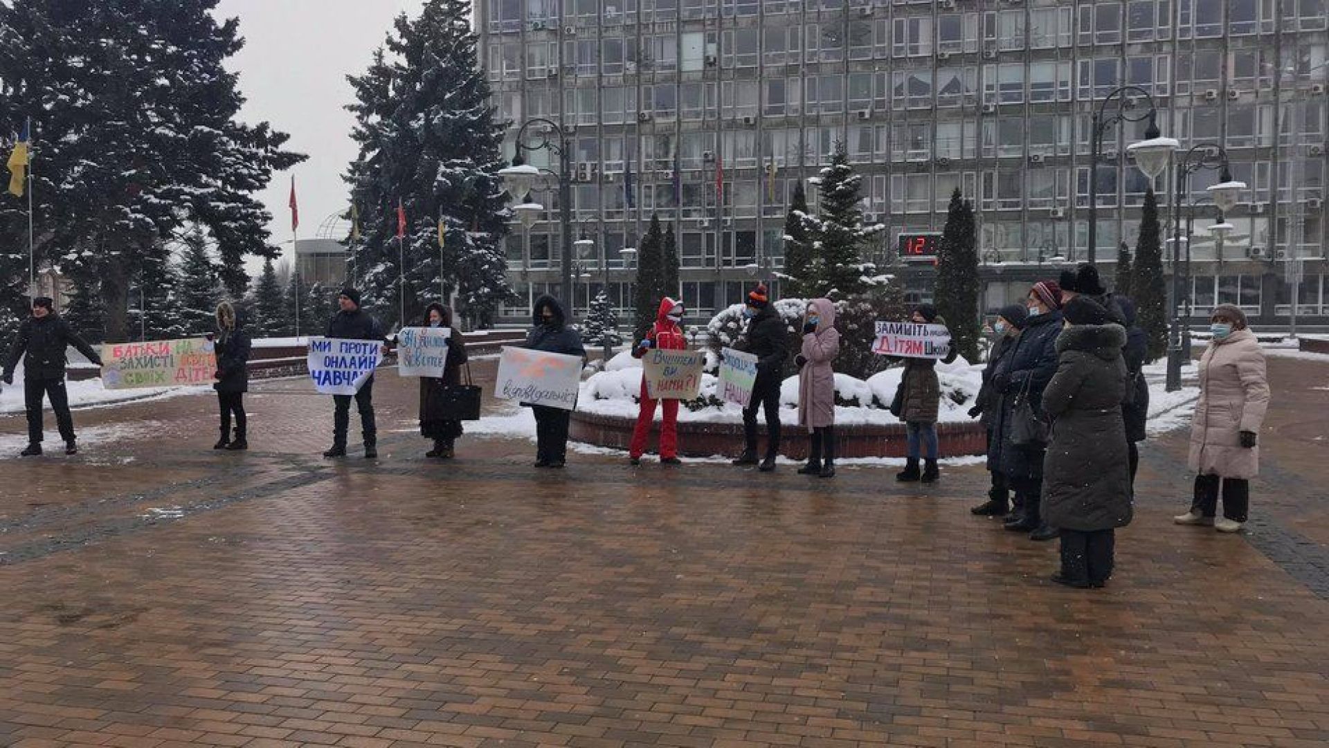 Кілька десятків людей з плакатами, нагадаємо, зібралися 17 січня біля міської ради. Вінничани виступали проти продовження дистанційного навчання.