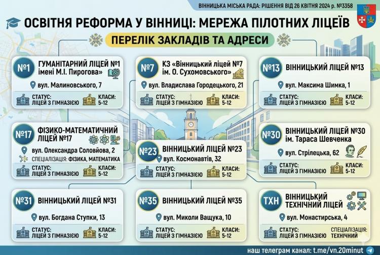 Реформа старшої школи у Вінниці: розбір нової мережі ліцеїв, бюджетів та реальних загроз для учнів